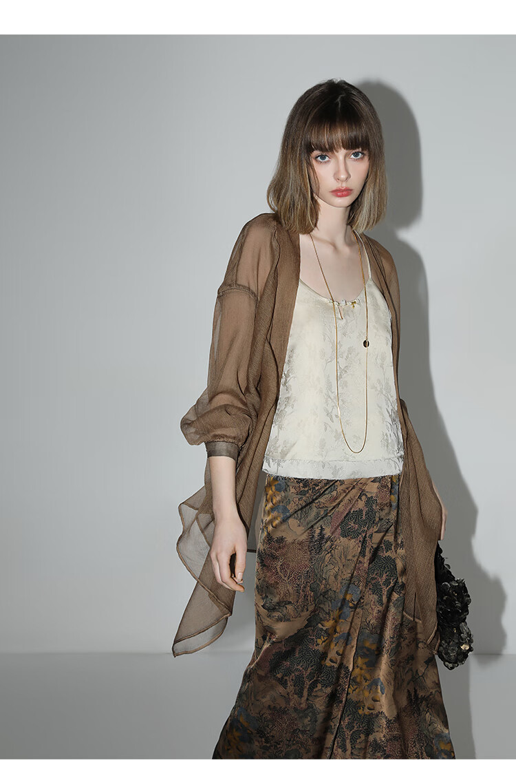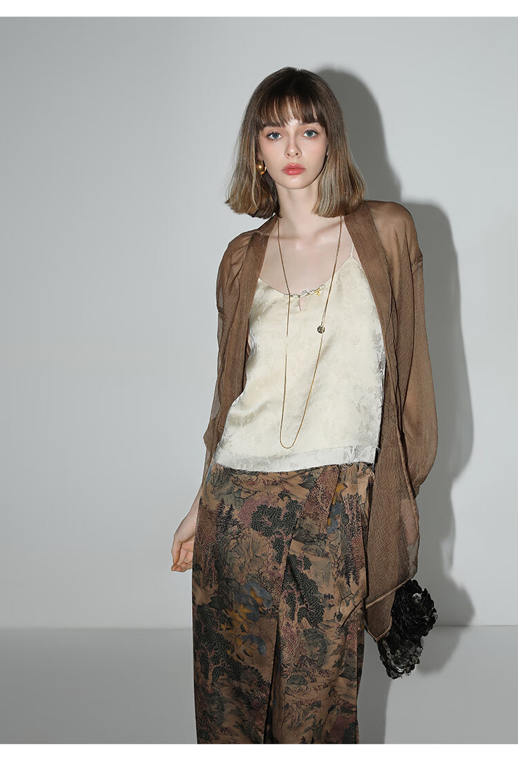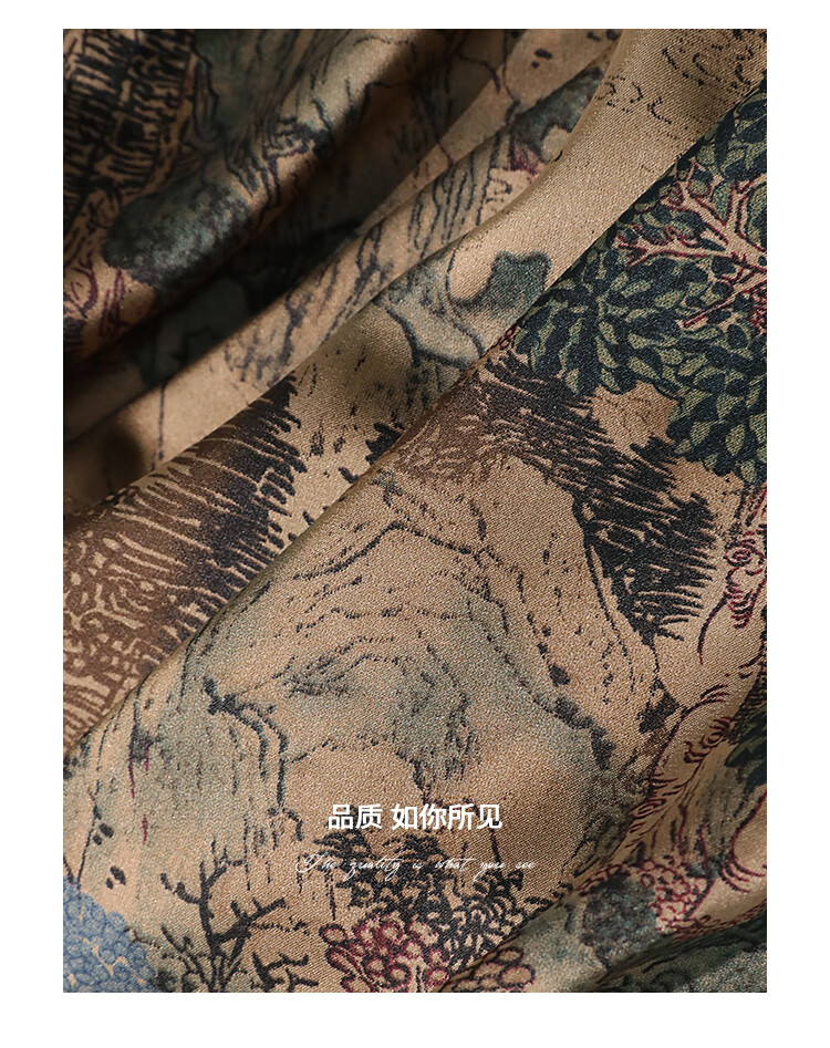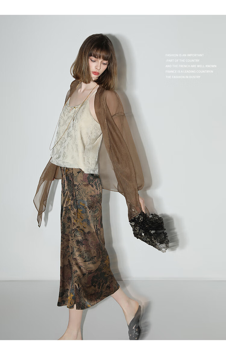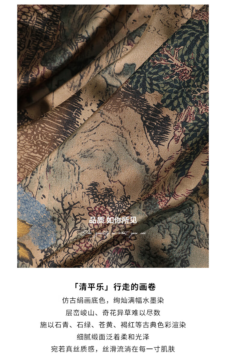 【限时秒杀】COCOBELLA轻奢新国风飘带印花半身裙高腰捏褶缎面筒裙HS0018