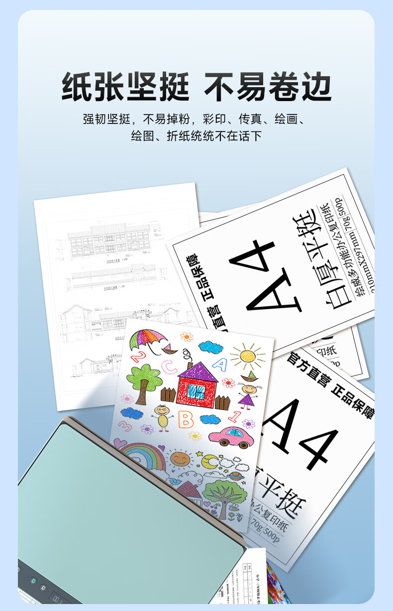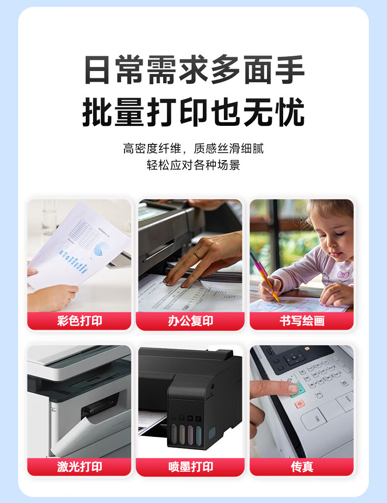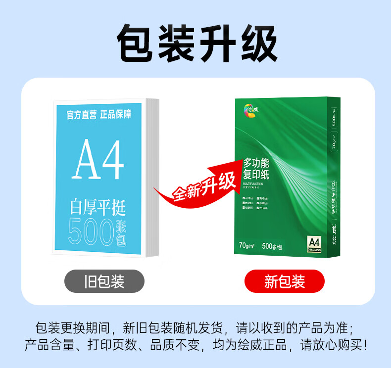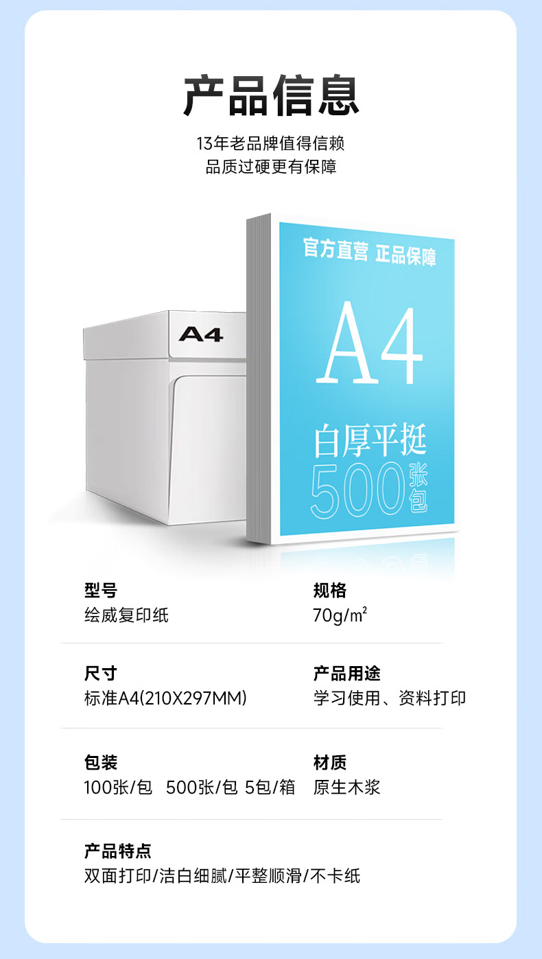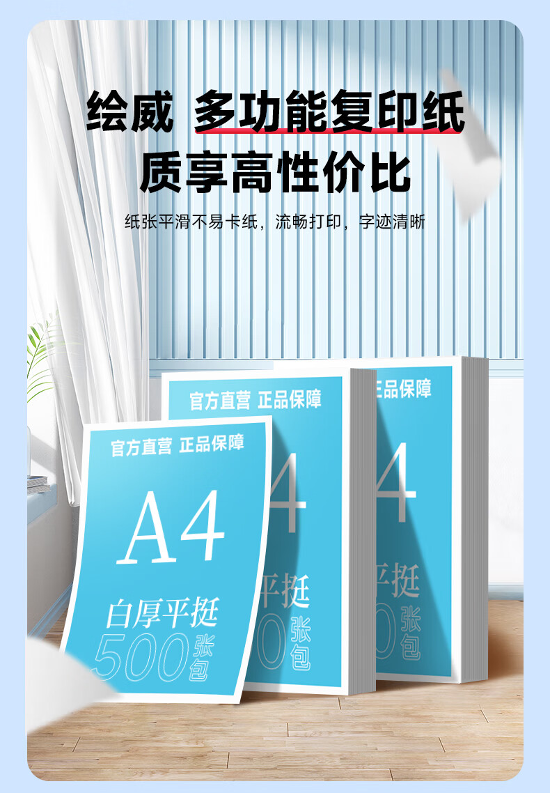 绘威A4打印纸70g500张 单包复印纸 双面加厚草稿纸 打印书写绘画