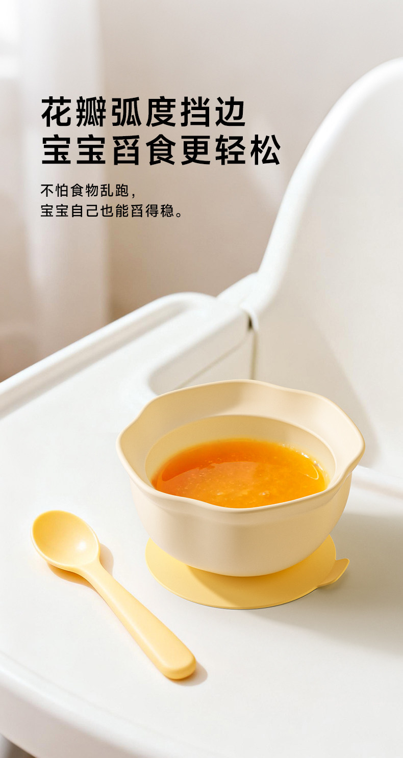 浦利顿蛋花碗宝宝辅食婴儿吃饭专用饭碗餐盘吸盘硅胶可蒸煮儿童餐具宝宝