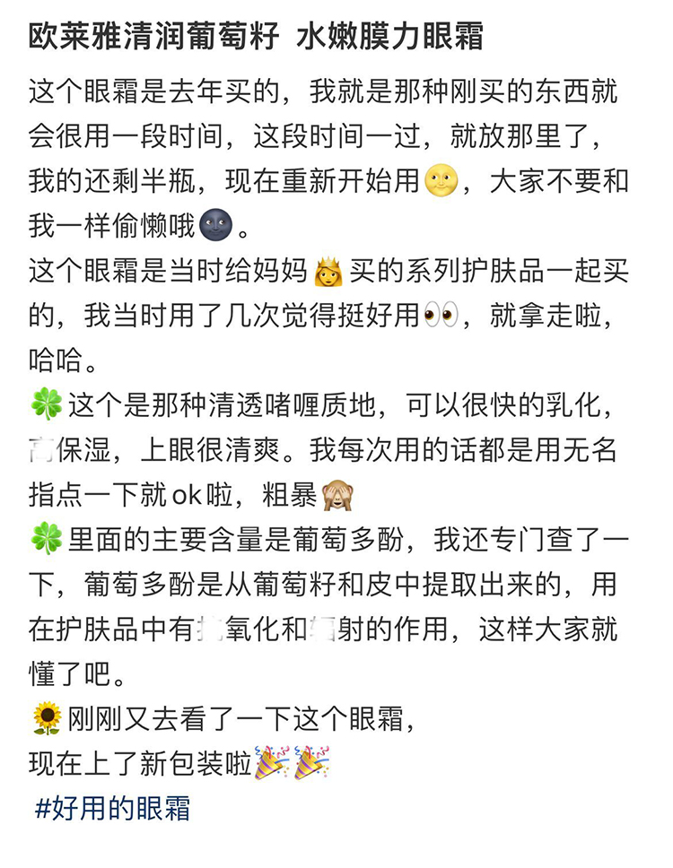 【商品名称】欧莱雅清润葡萄籽水嫩膜力眼霜 15ml