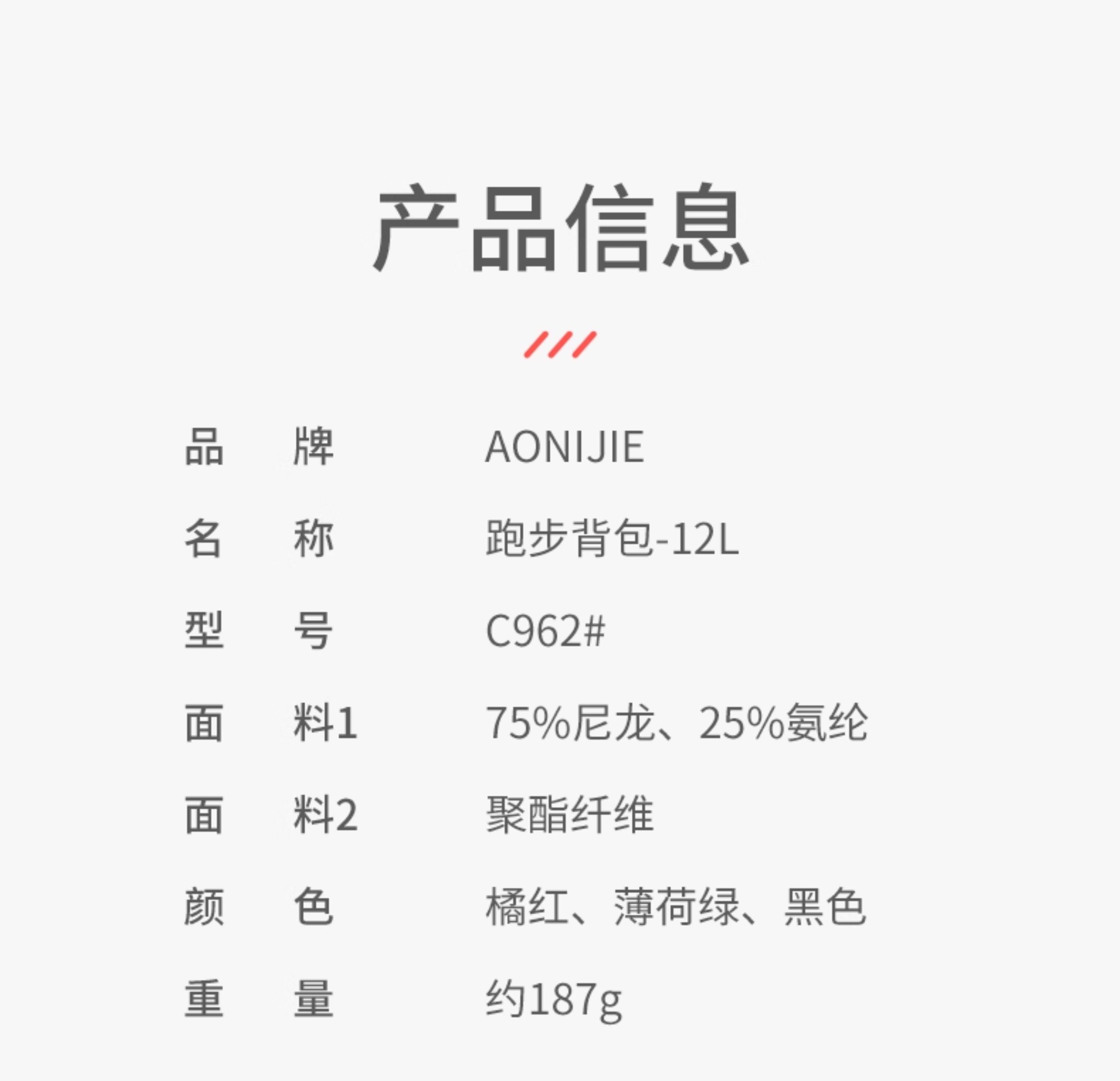 奥尼捷 入门级·疾风系列越野跑背包12L