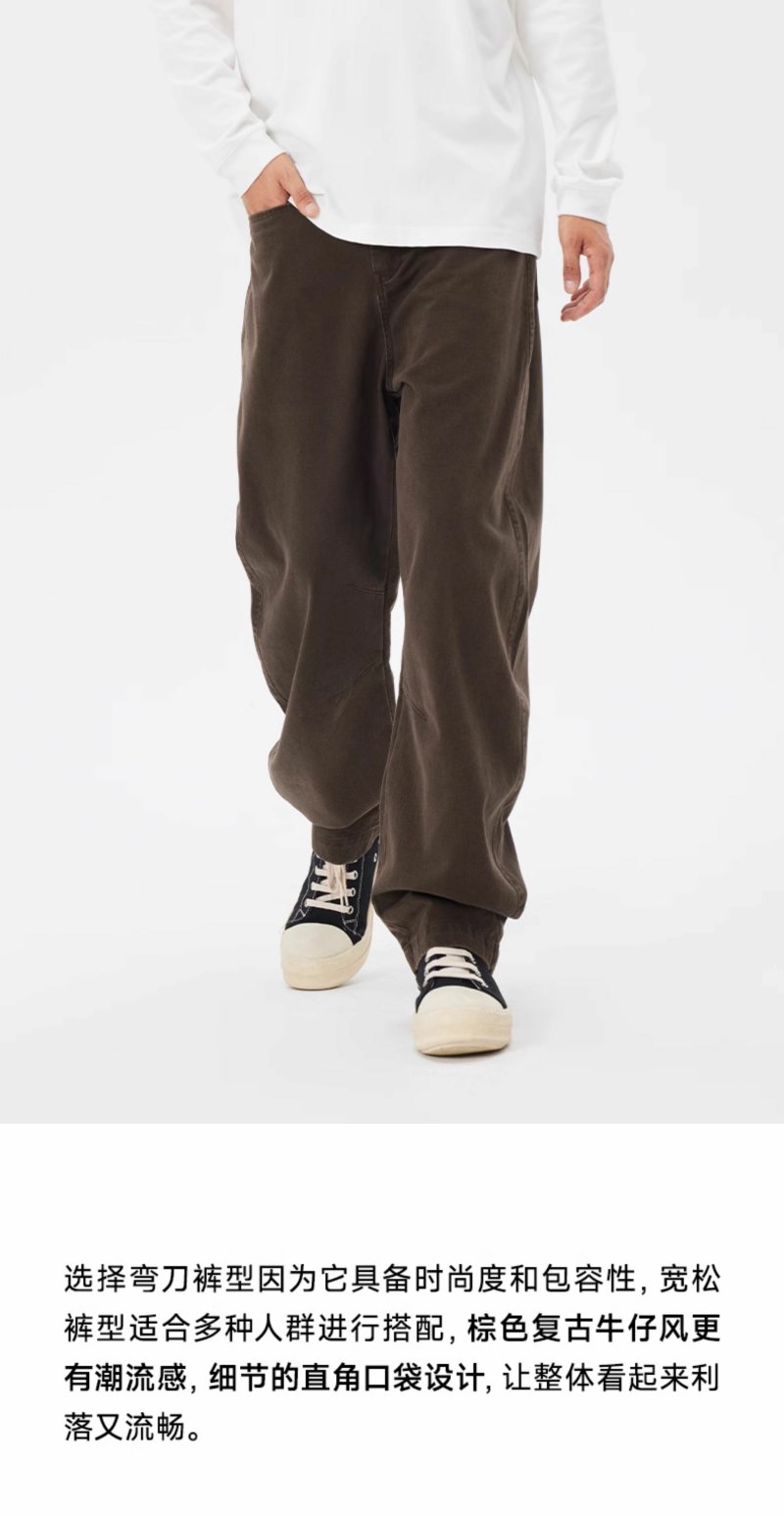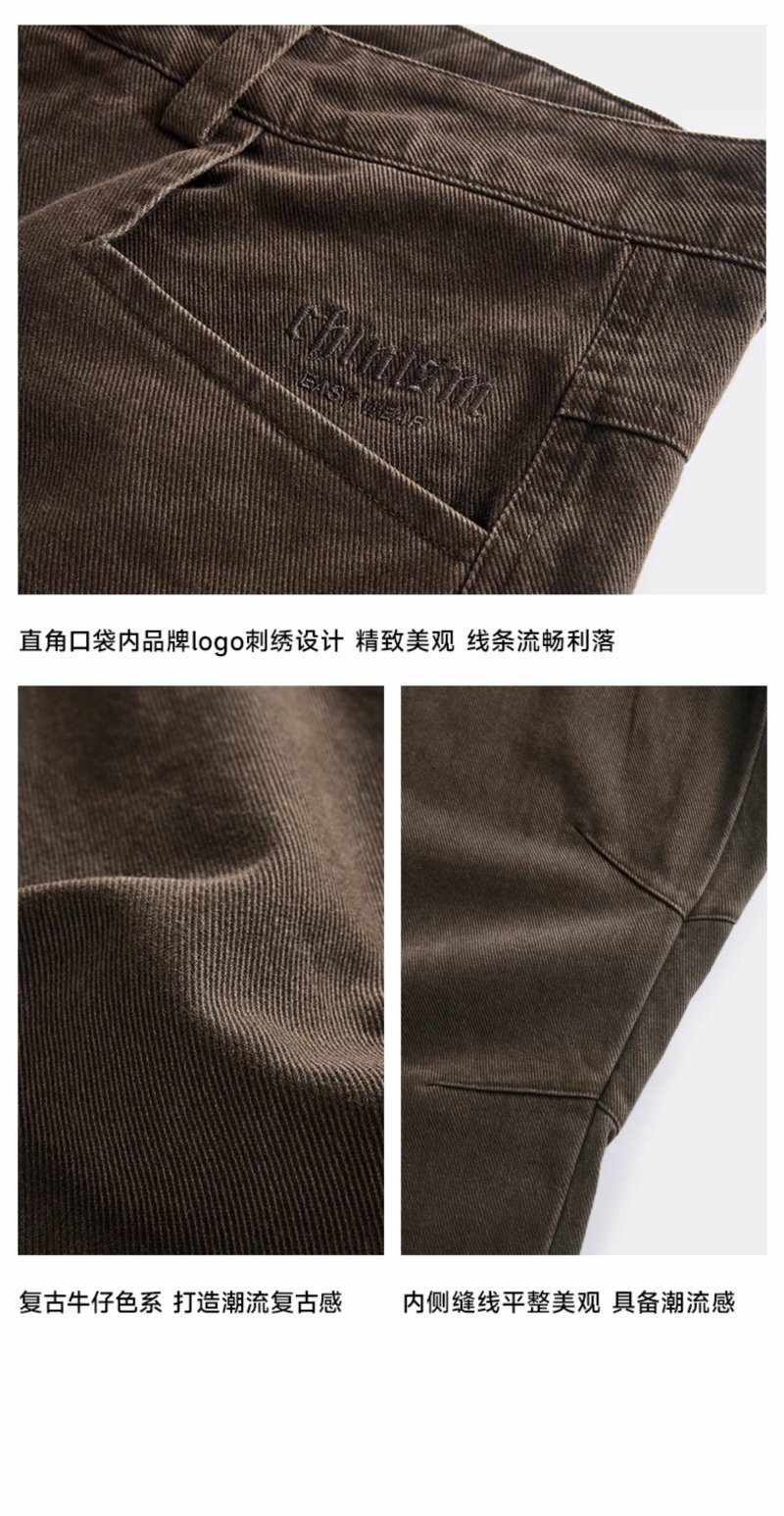 CHINISM赤尘 美拉德棕色复古弯刀牛仔裤男宽松水洗直筒裤美式裤子