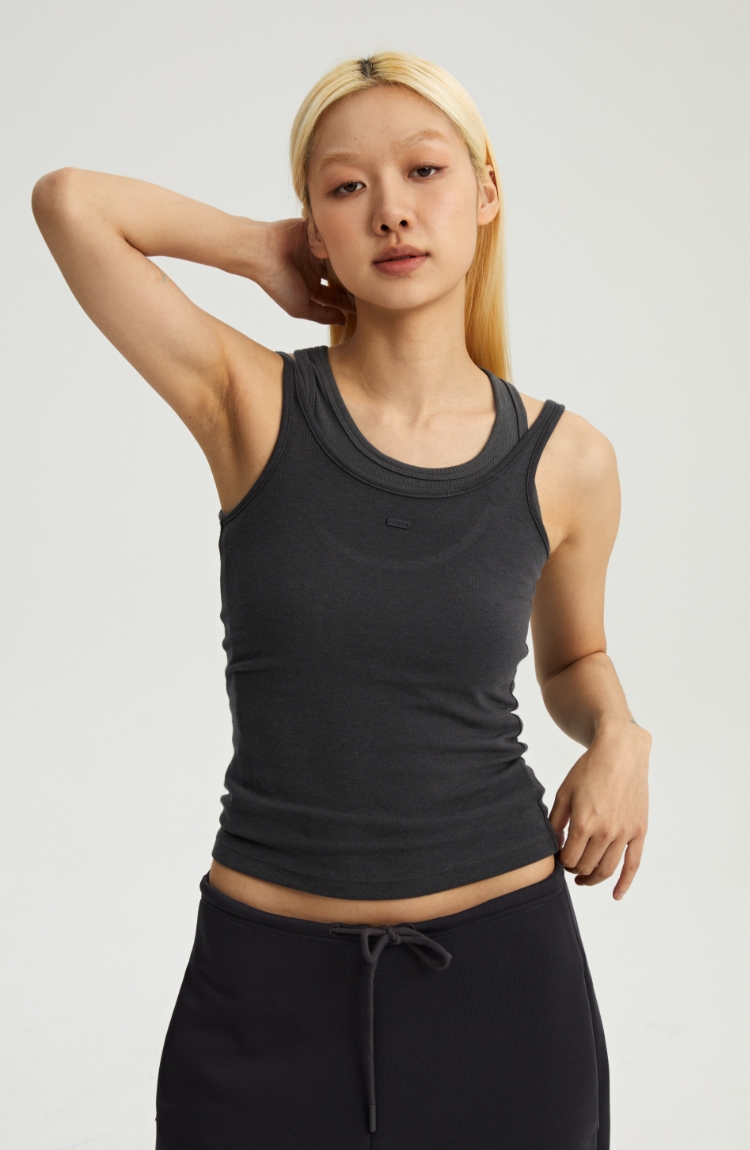 Oneup抹胸坎肩假两件长袖