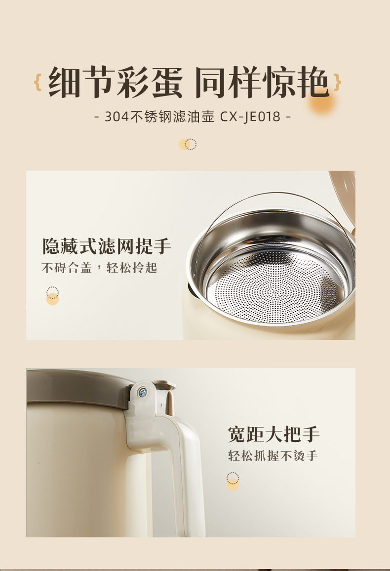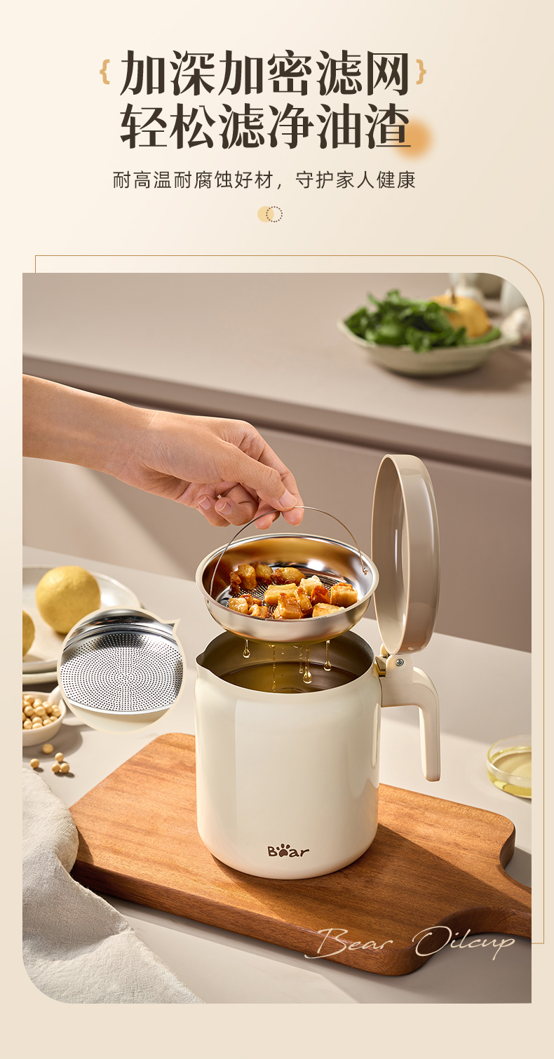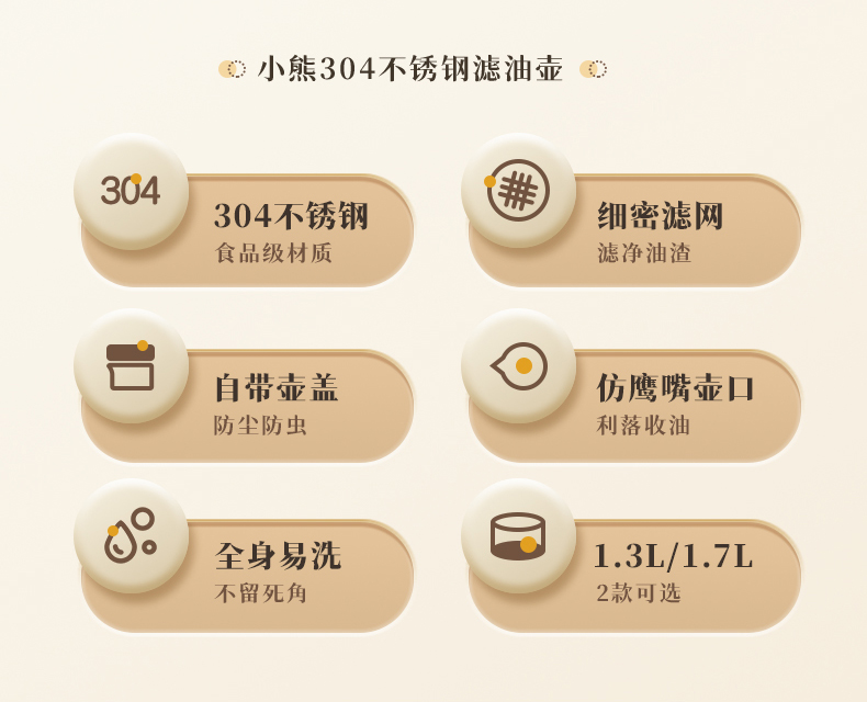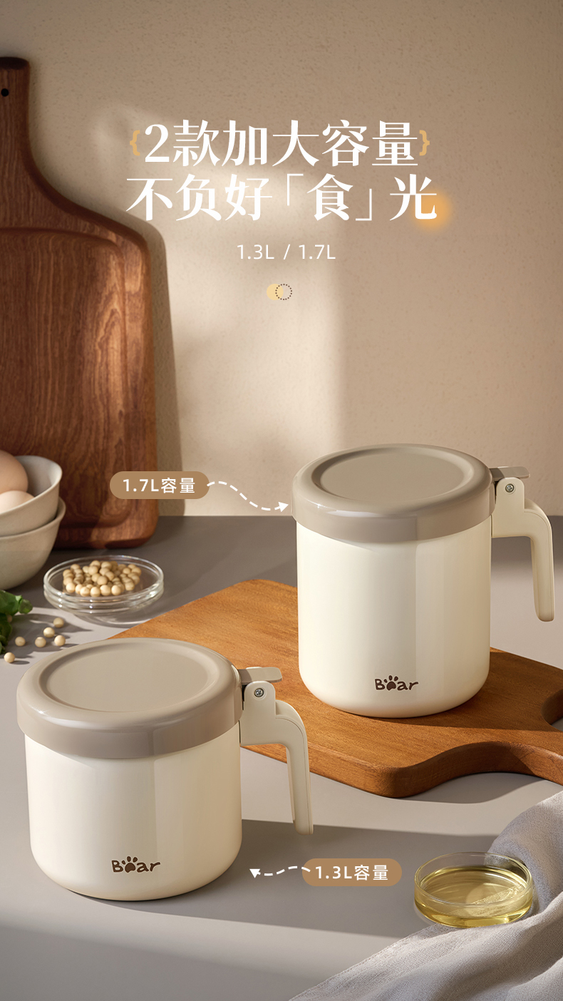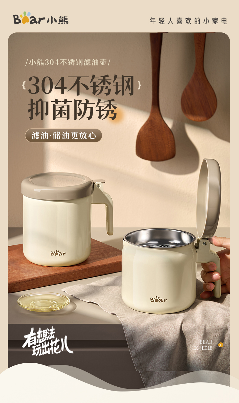 小熊不锈钢滤油壶不锈钢滤油神器1.3L