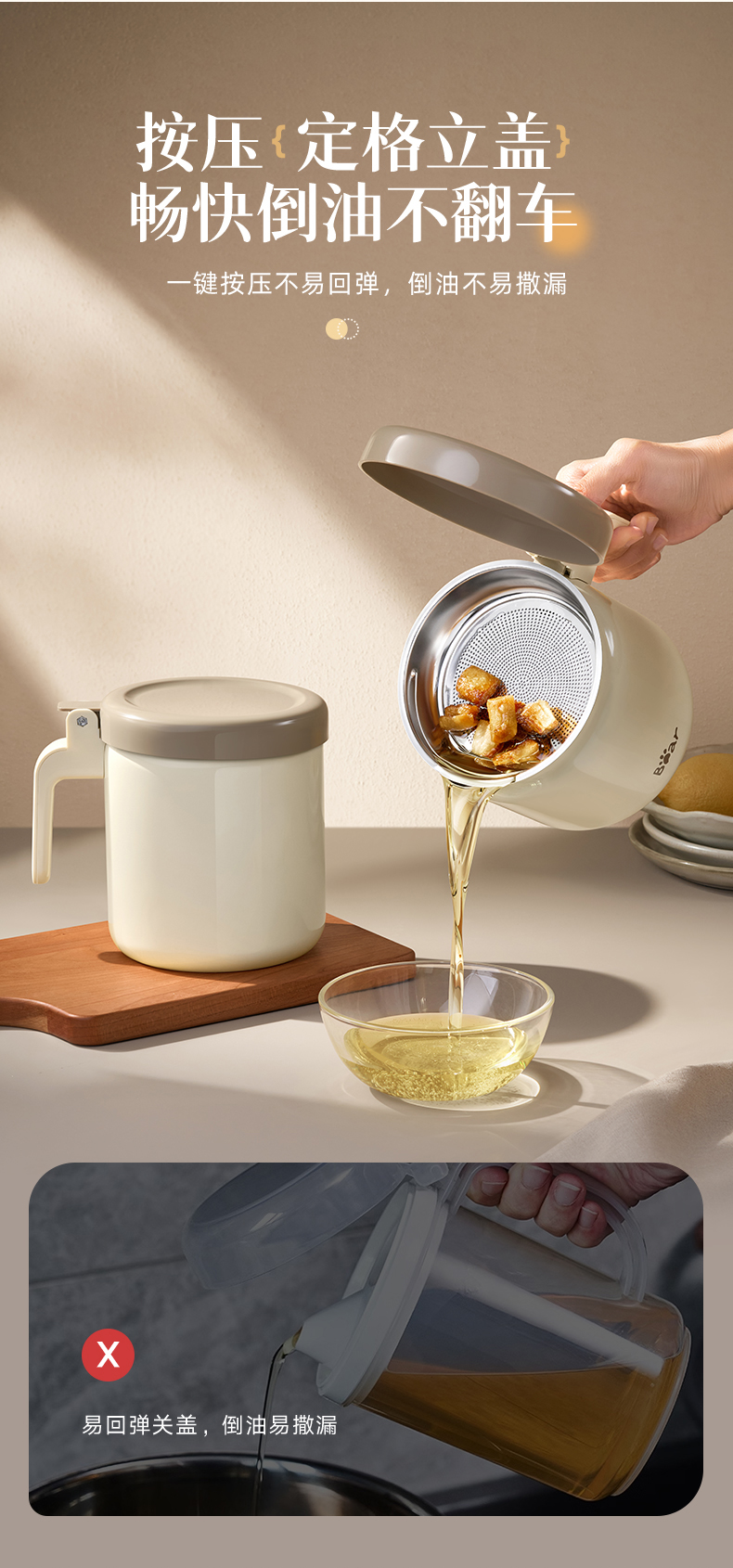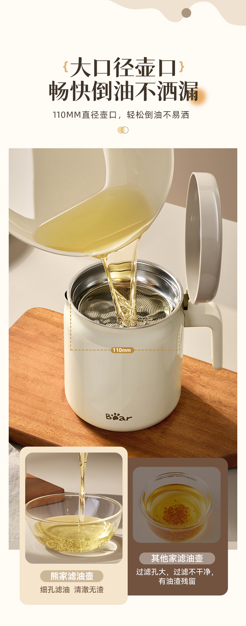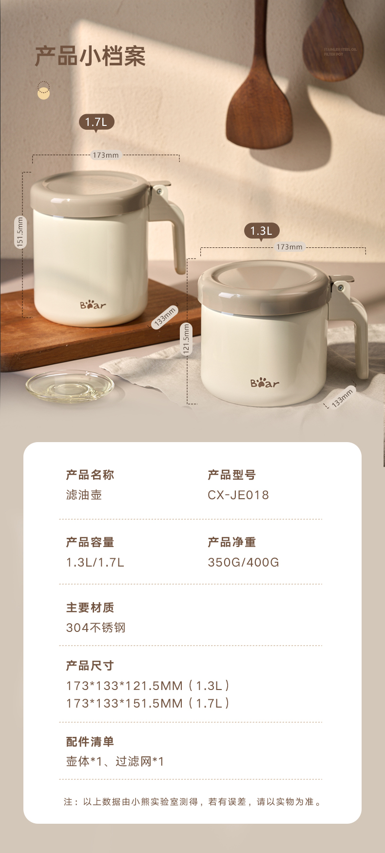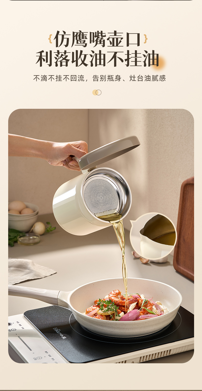 小熊不锈钢滤油壶不锈钢滤油神器1.3L