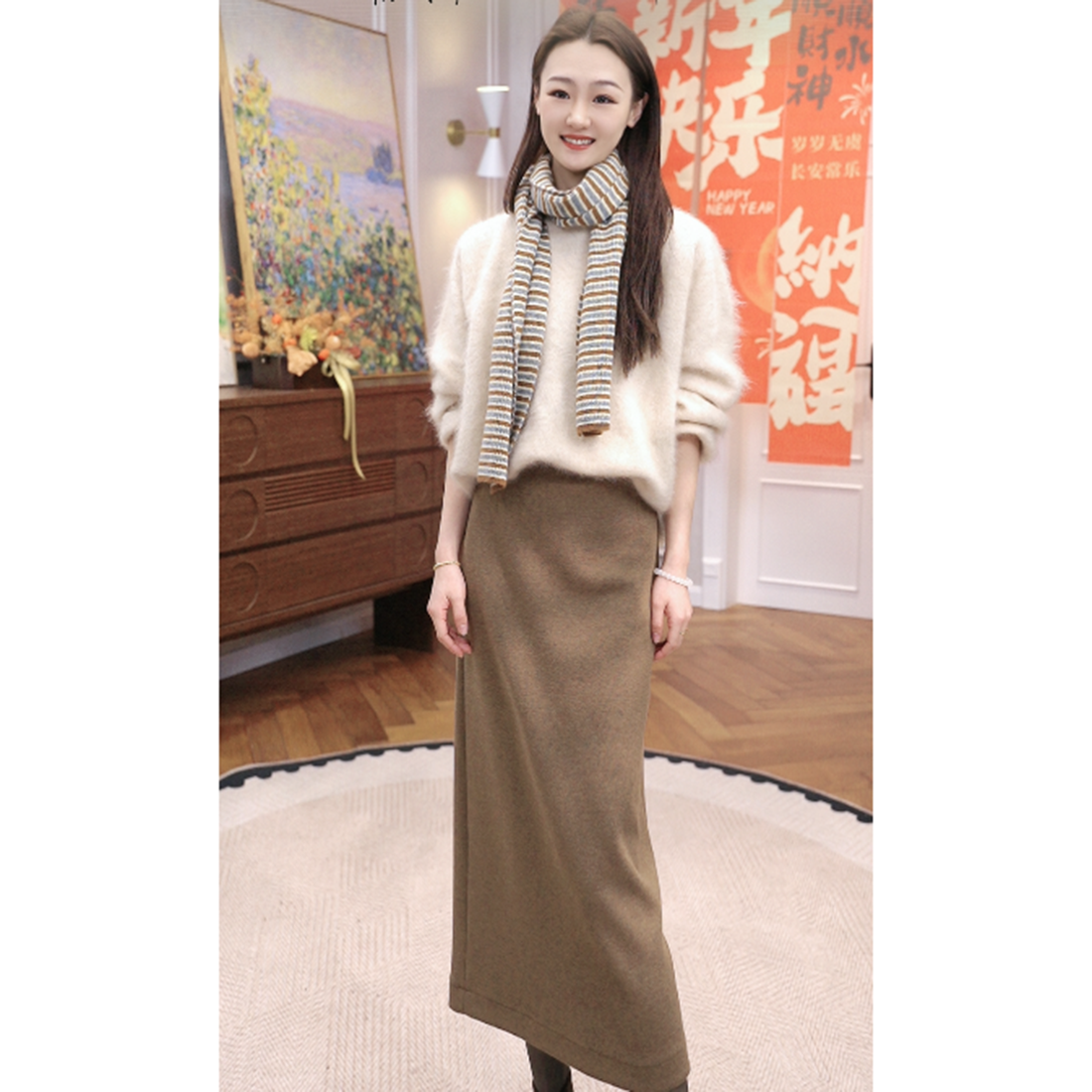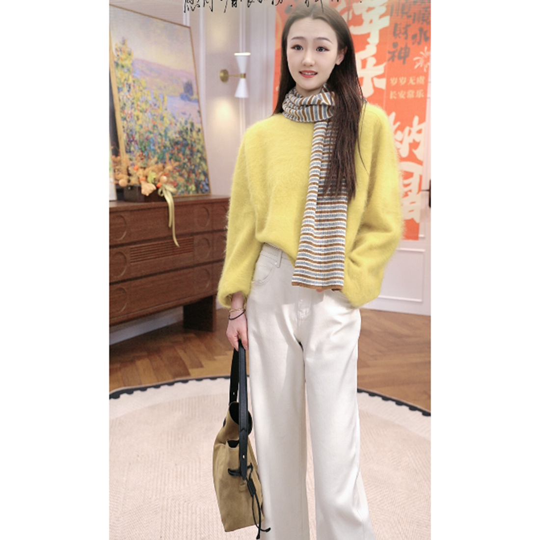 火桐hooton 梵高画笔 2026春款山羊绒拉绒圆领套头衫85839