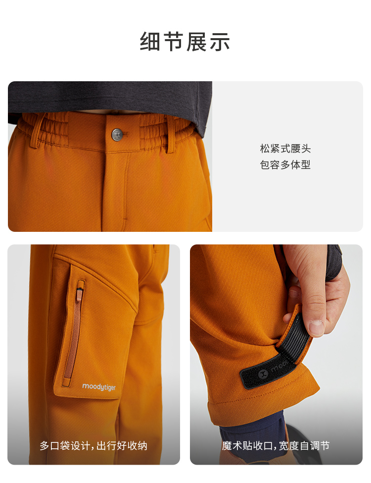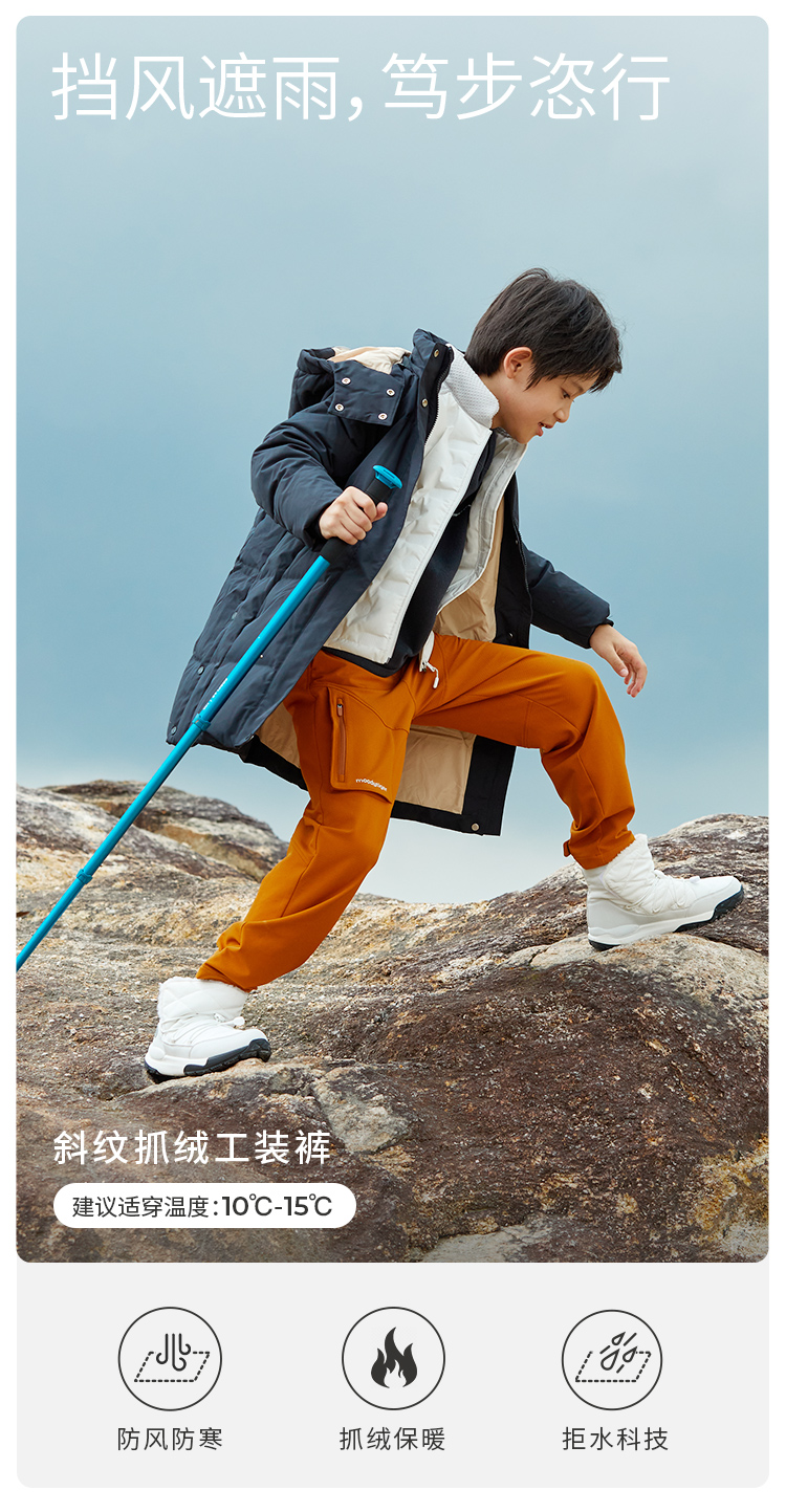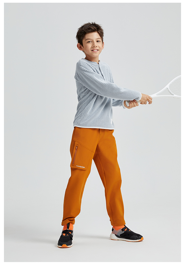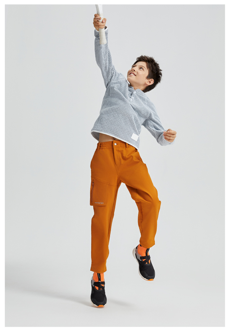 【3月】冬季新款moodytiger儿童裤子23年男童女童加绒保暖宽松运动裤长裤 M34111304