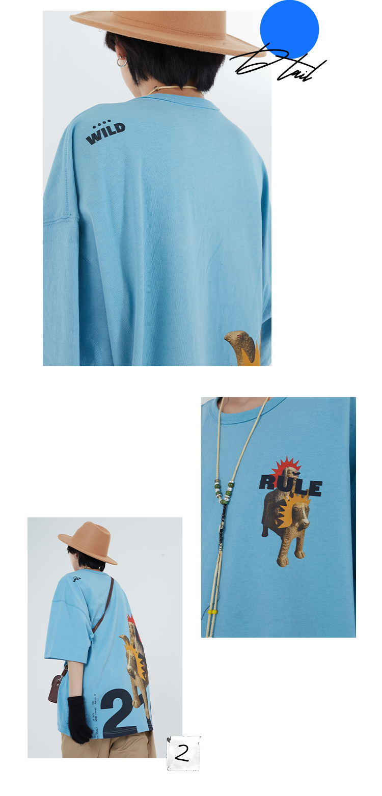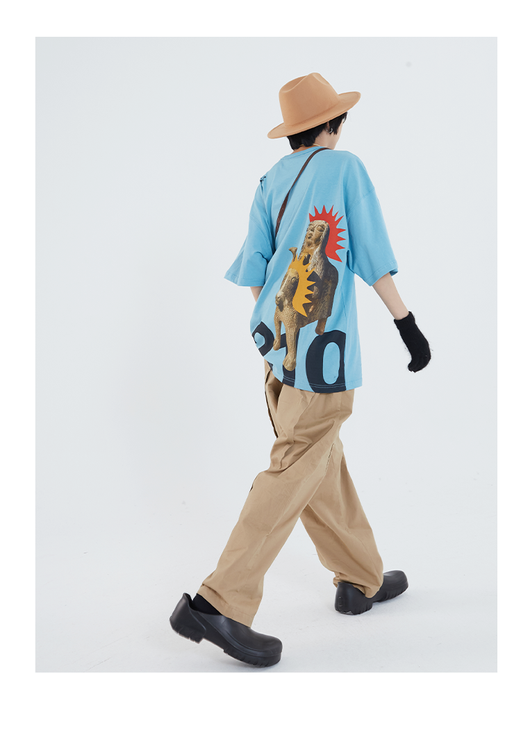 POH「部落也朋克」主题印花街头休闲宽松落肩短袖上衣男女bf风T恤
