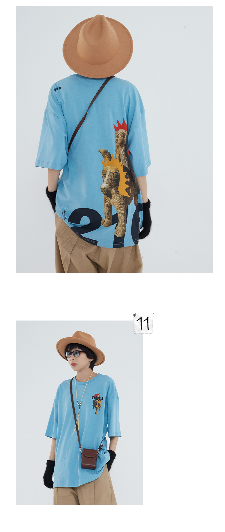 EAFINETAL.21SS新款双面穿印花设计做旧纯棉宽松休闲套头上衣卫衣