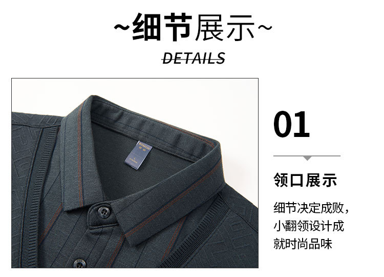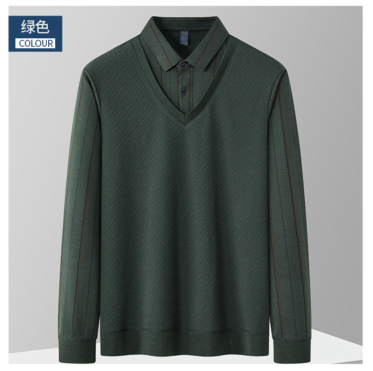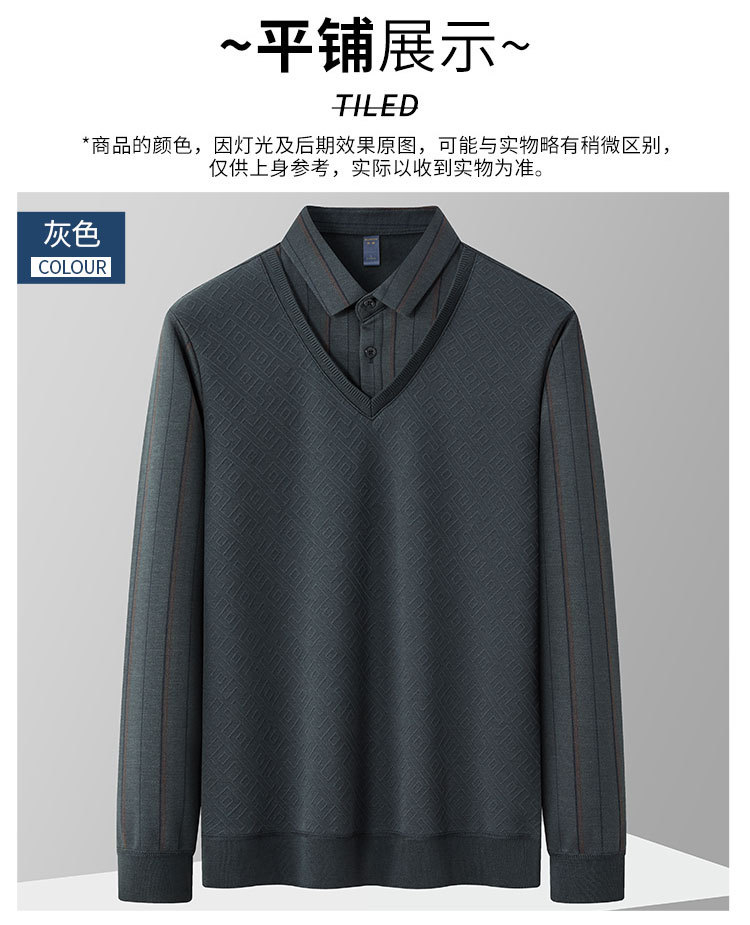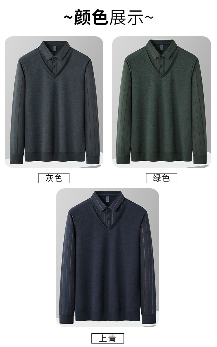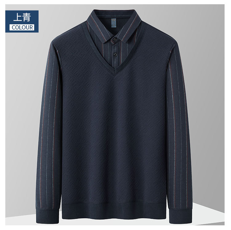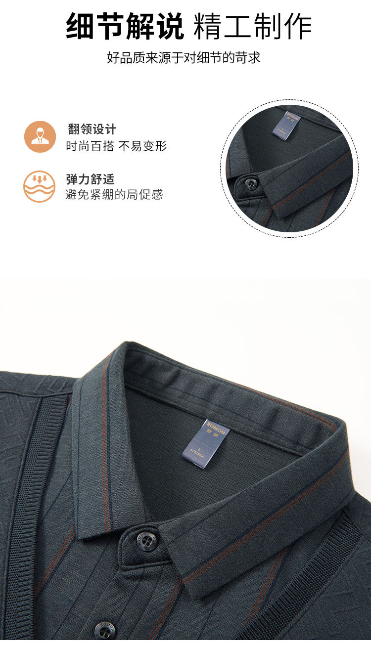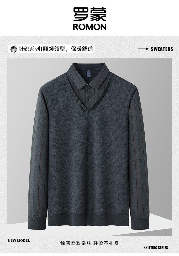【肌理提花】罗蒙秋冬经典条纹衬衫男长袖假两件针织衫男衬衫中老年爸爸装