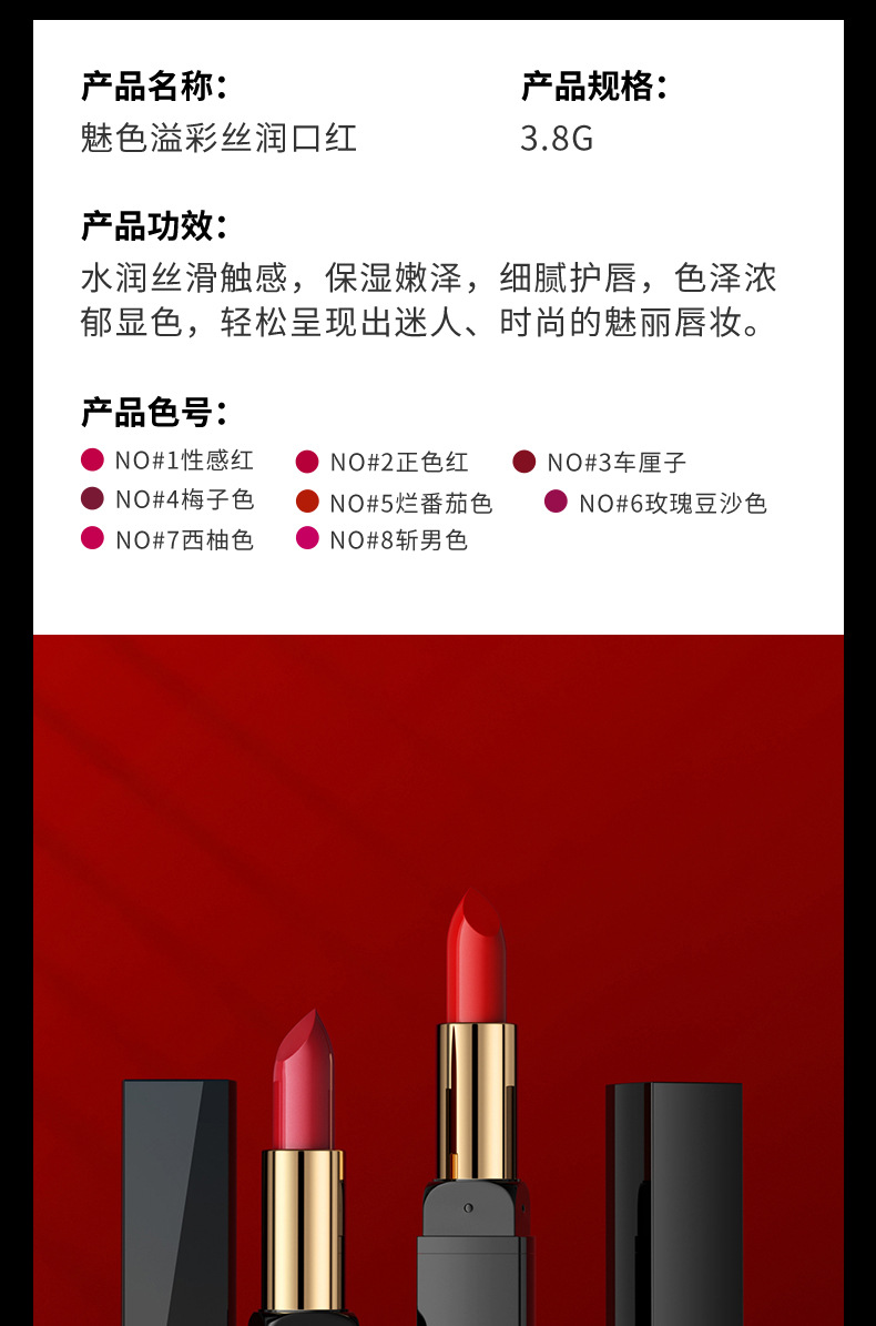 形象美魅色溢彩丝润口红温和贴服滋润保湿细腻护唇优雅迷人口红