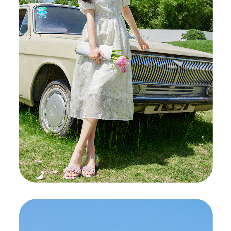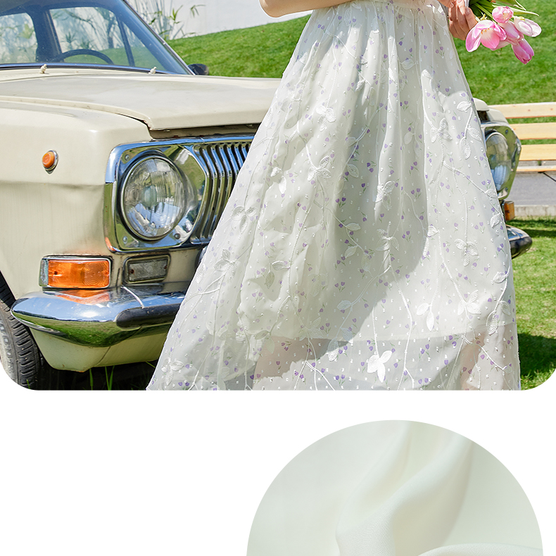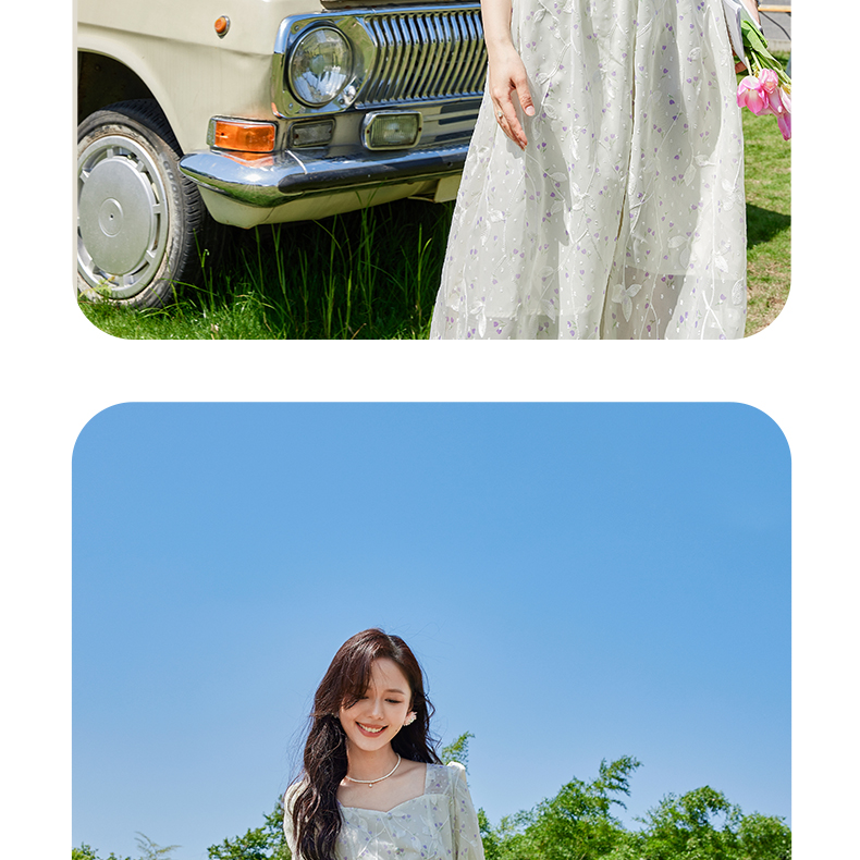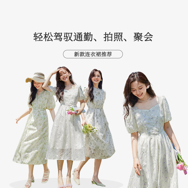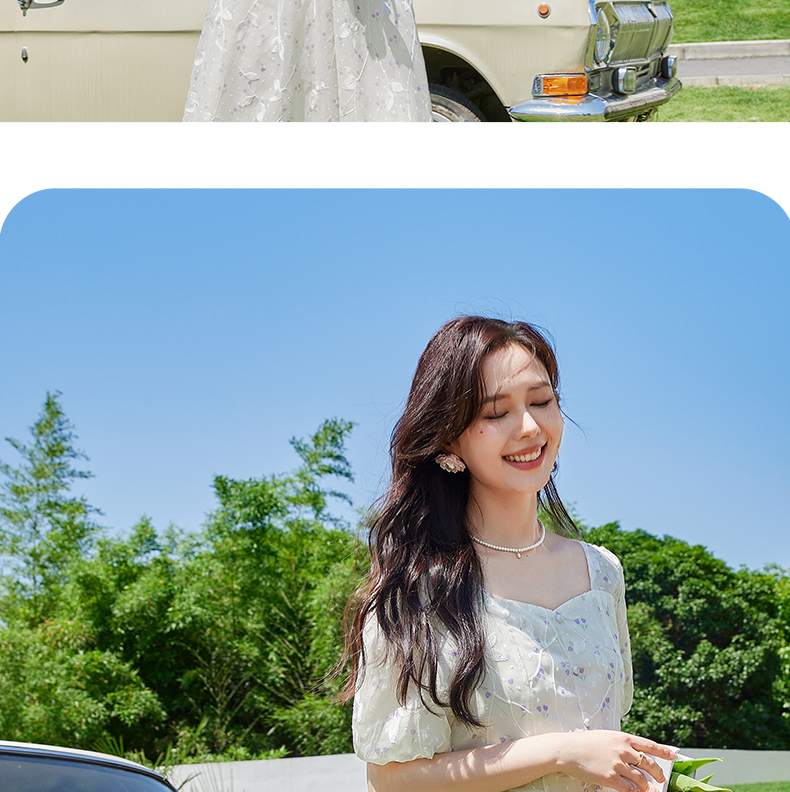 VICTORIA&VERA夏季新款法式小清新方领初恋系温柔风绣花肌理感连衣裙