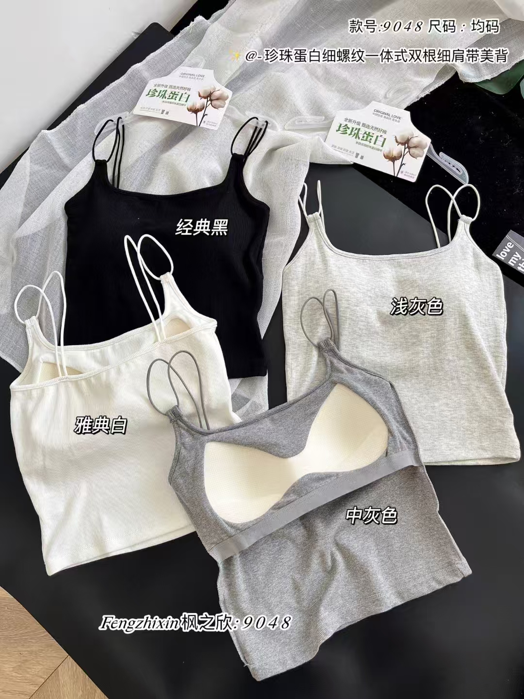 【品名】女士性感吊带一体式背心/文胸美背 细肩带无钢圈80-130斤