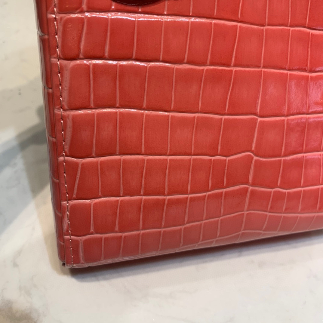仿真度极高鳄鱼纹,正品开模,根本你都分不出是鳄鱼纹还是鳄鱼皮,这质感就得配这亮面的浅金五金,看清楚皮纹哦!这是专柜刚出的皮纹哦不同以前的皮纹,五金也是亮的,而且软来又不是硬邦邦的那种,好皮胚压出来的效果还是嗷嗷的。