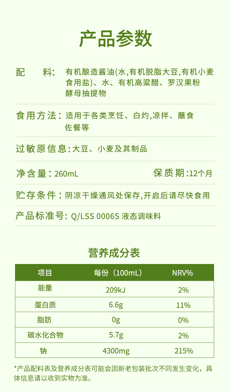 食圣 有机白灼汁260ml瓶装
