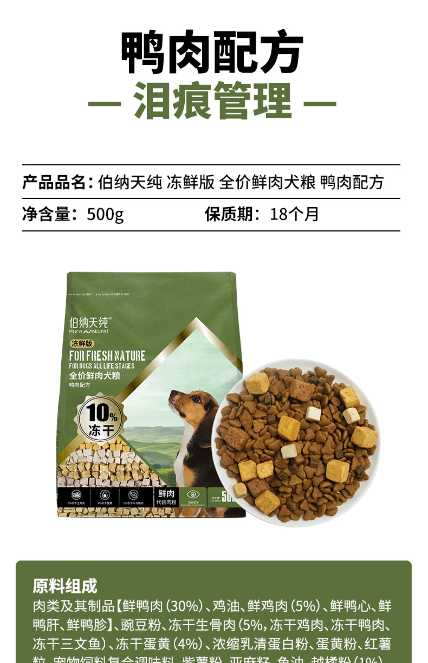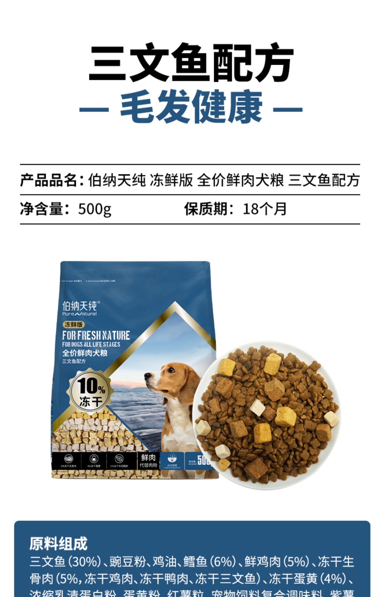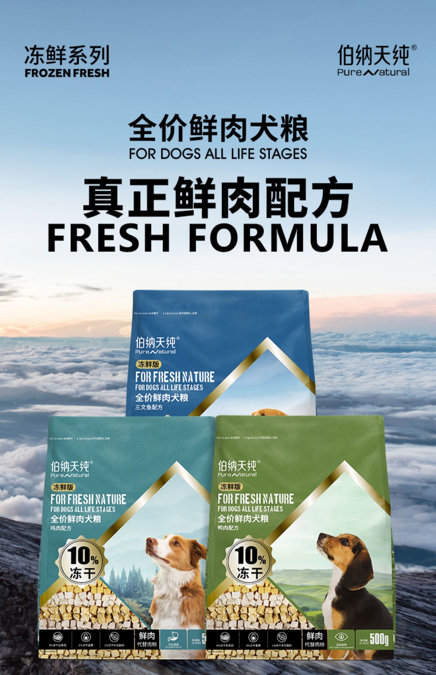 【冻鲜系列】伯纳天纯鲜肉狗粮全价全犬种冻干鲜肉粮鸡肉三文鱼鸭肉配方500g