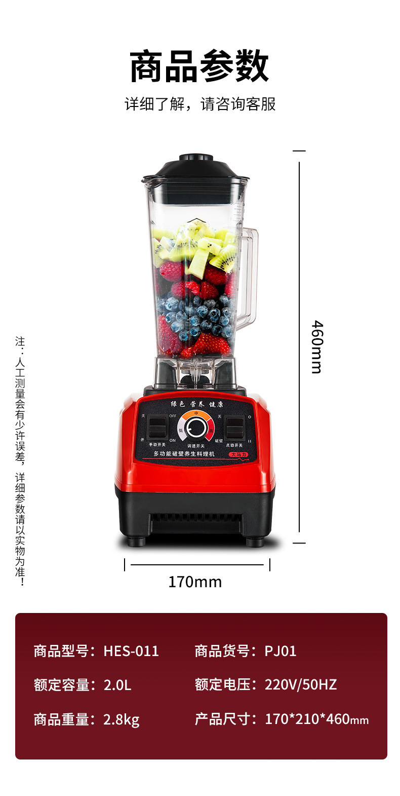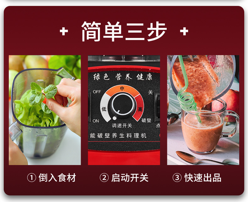 【一机多用!多功能破壁料理机】3-4人榨汁机全自动果汁机家用辅食机豆浆机,3档位转速配置 适用各种食材软硬度。ry