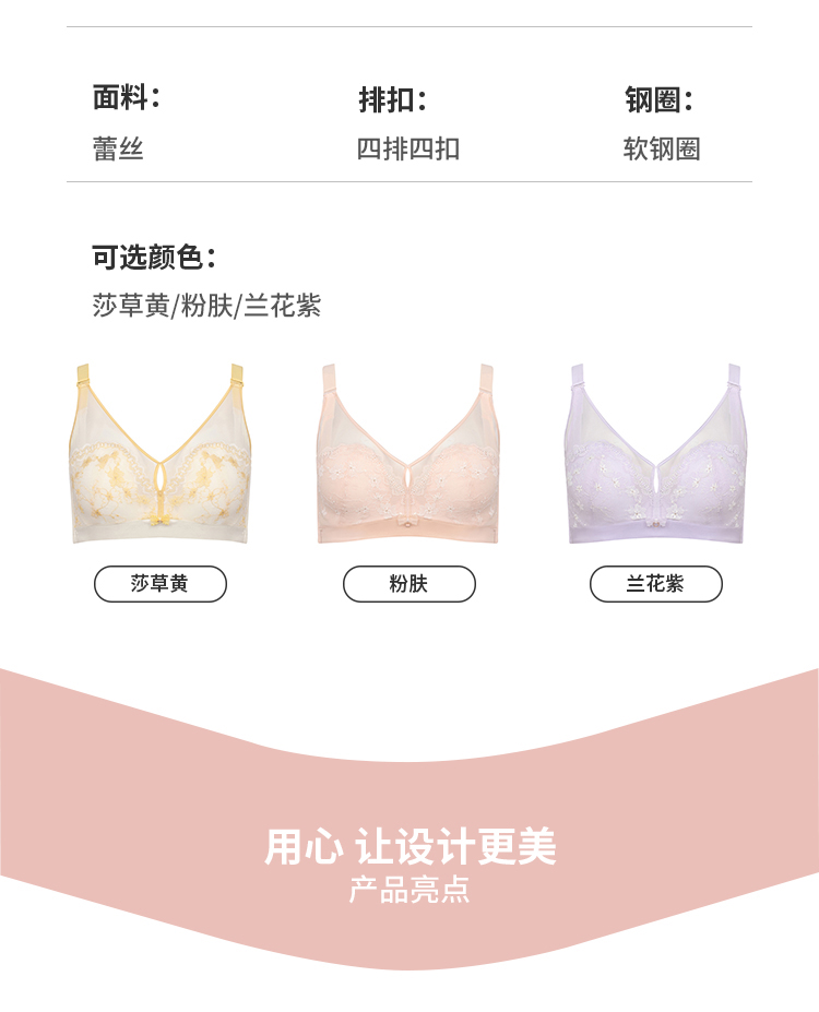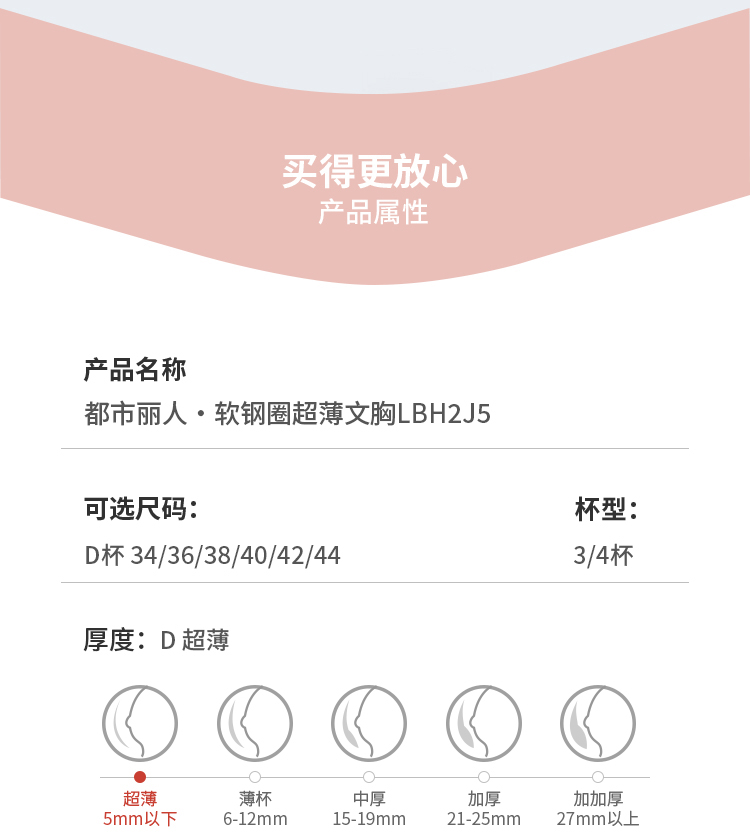 都市丽人内衣自然舒适A:中厚B:薄蕾丝三排扣树脂胶圈3/4杯常规文胸LB21A5
