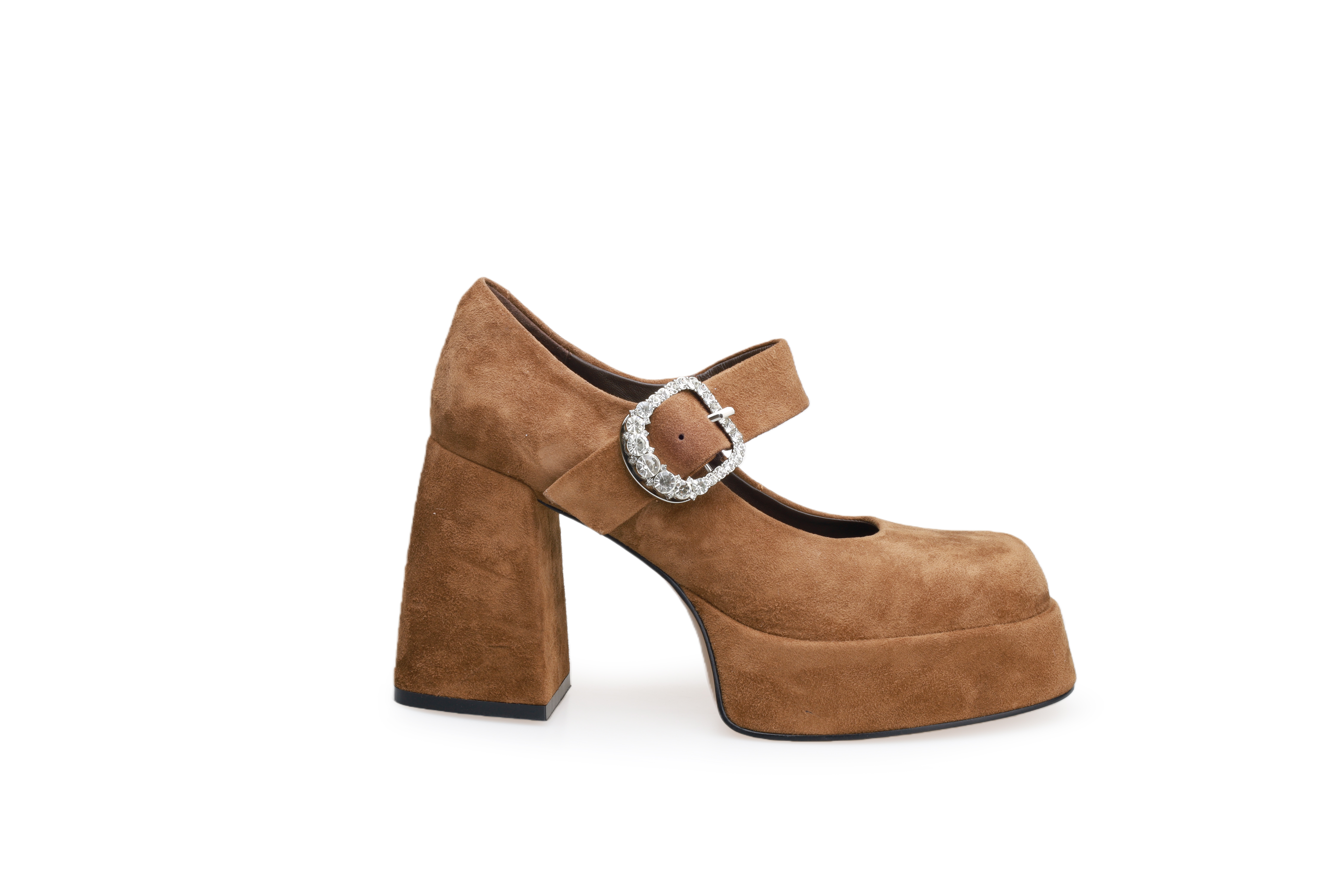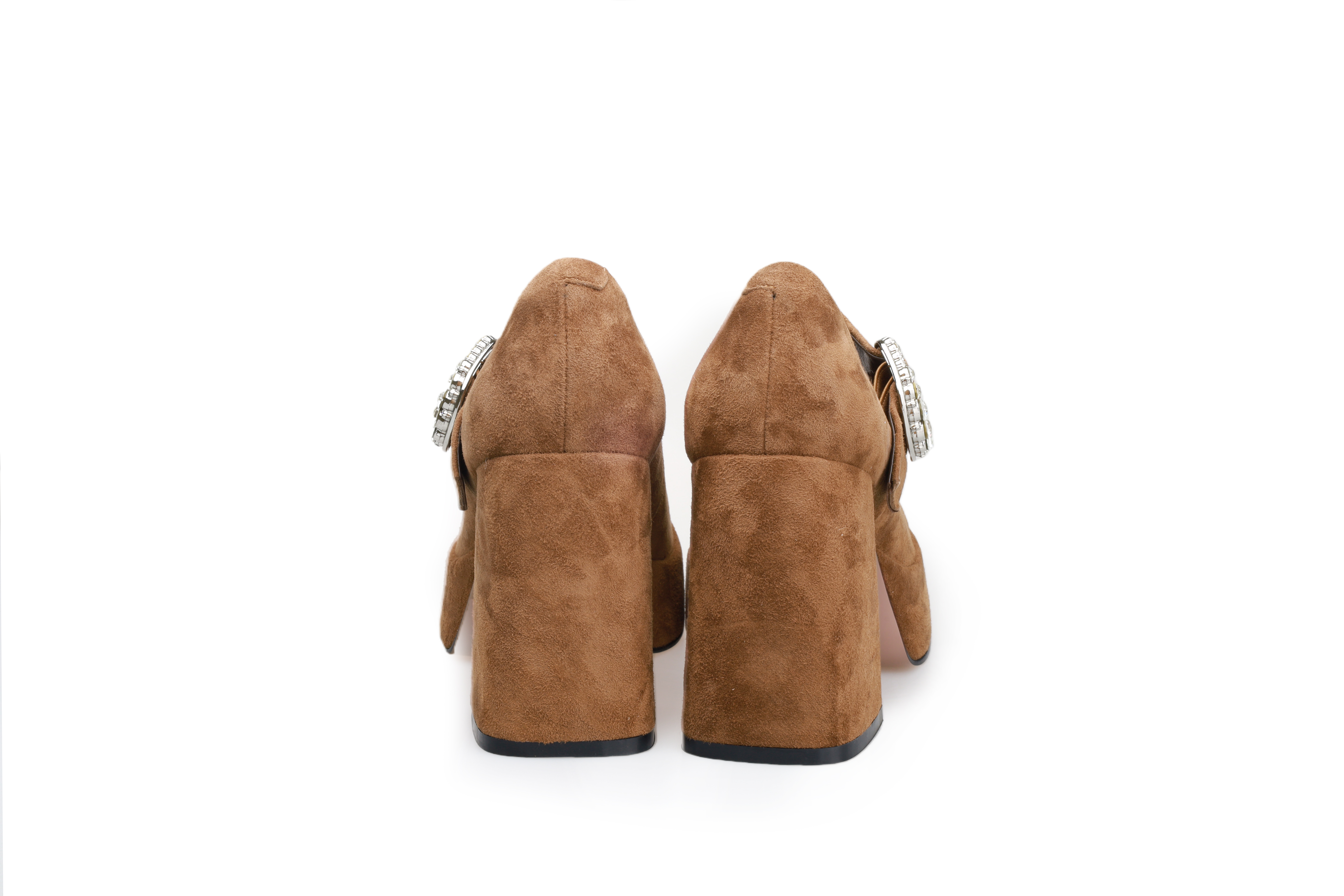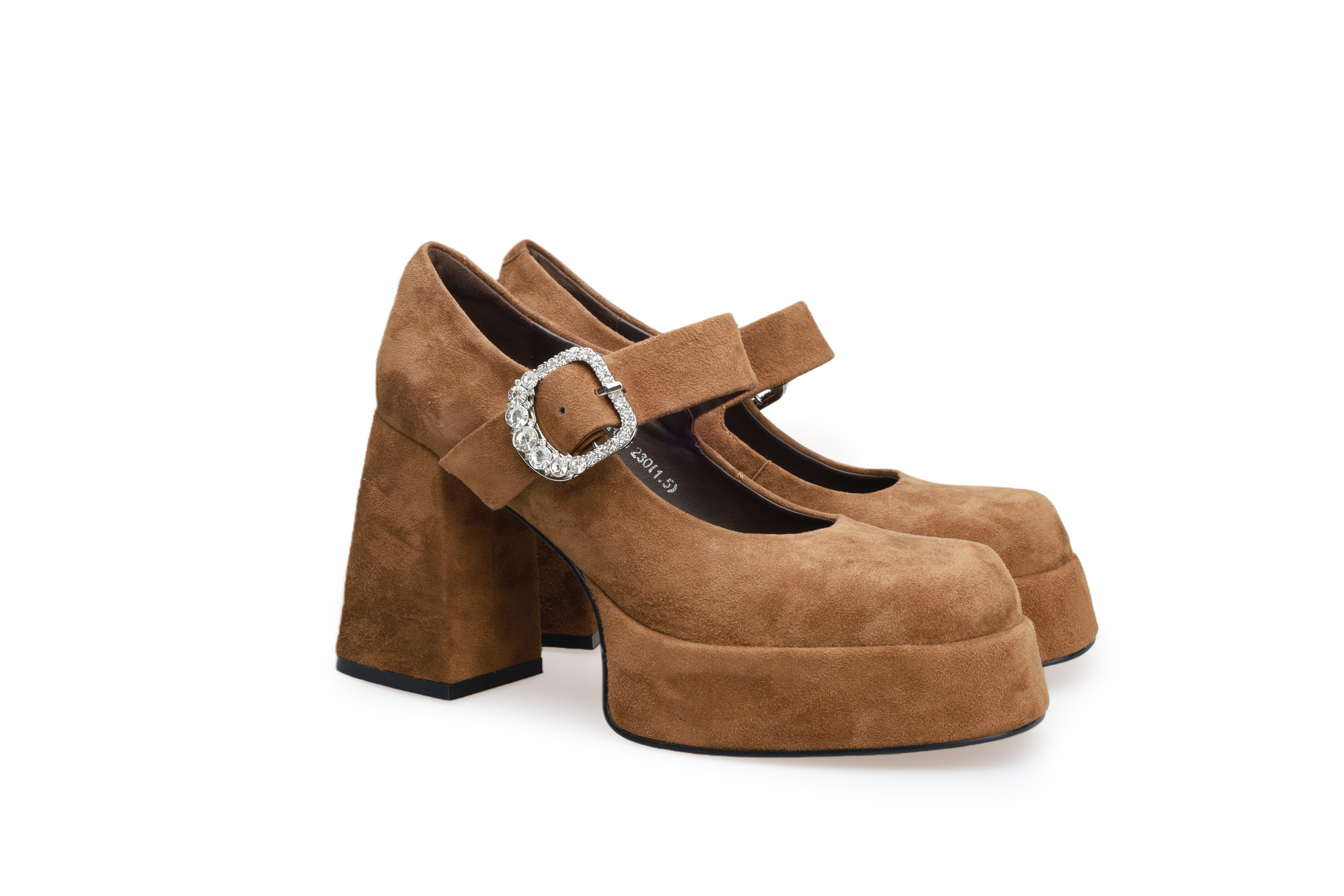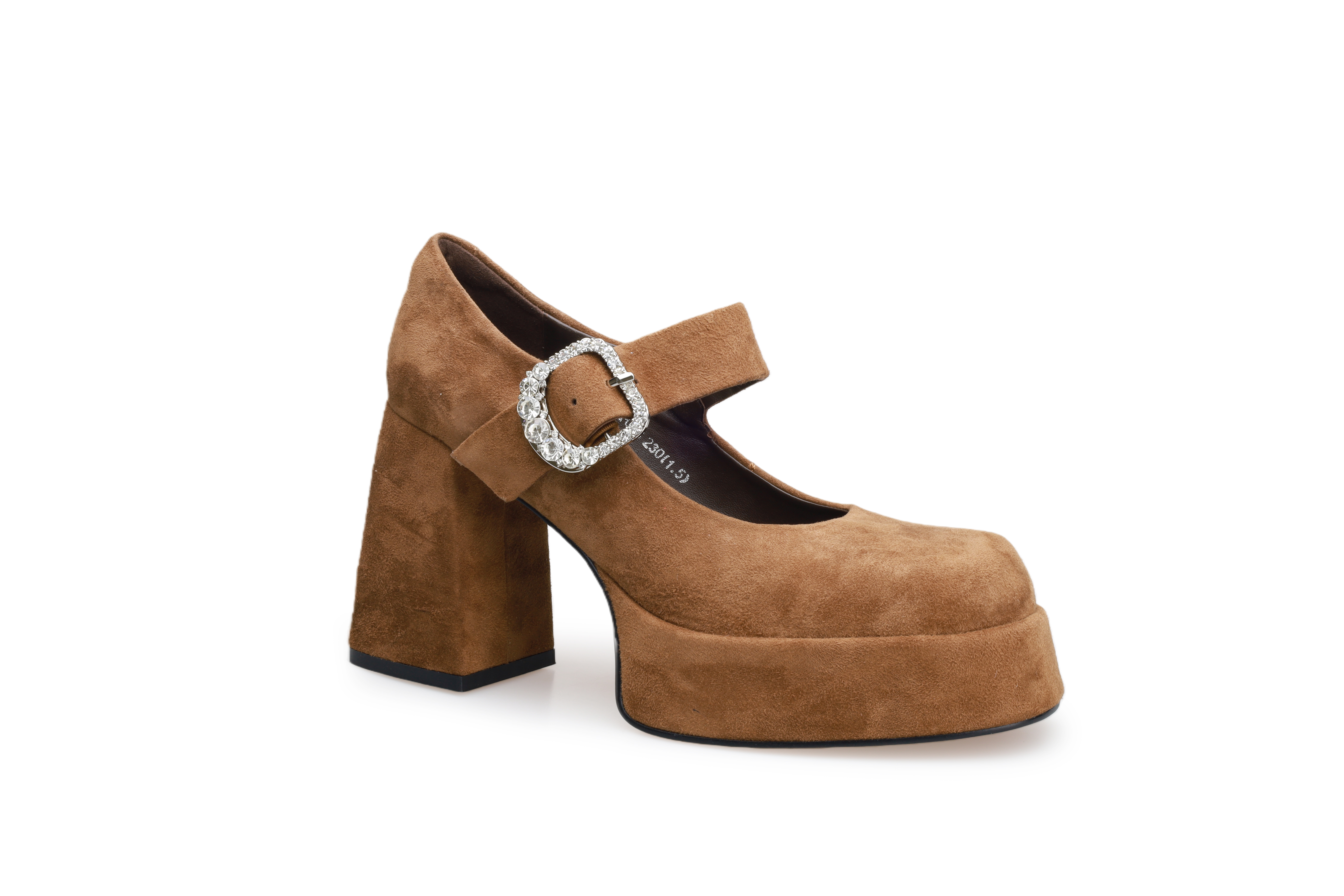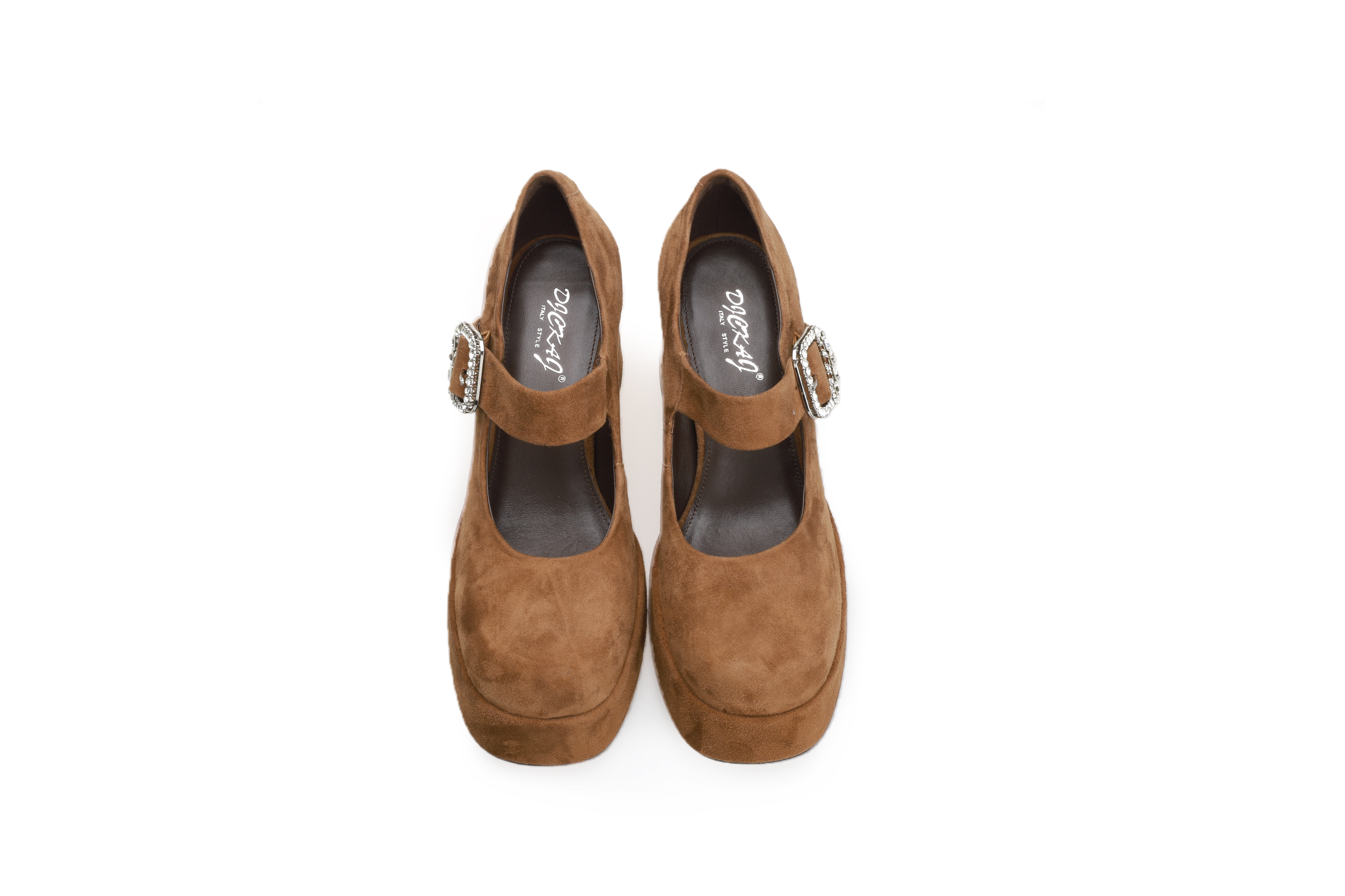 豪麟名鞋迪嘉女鞋玛丽珍鞋羊反绒面革DJHJA52WP036棕色