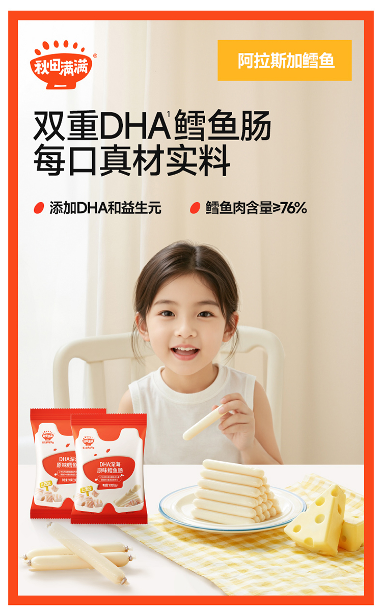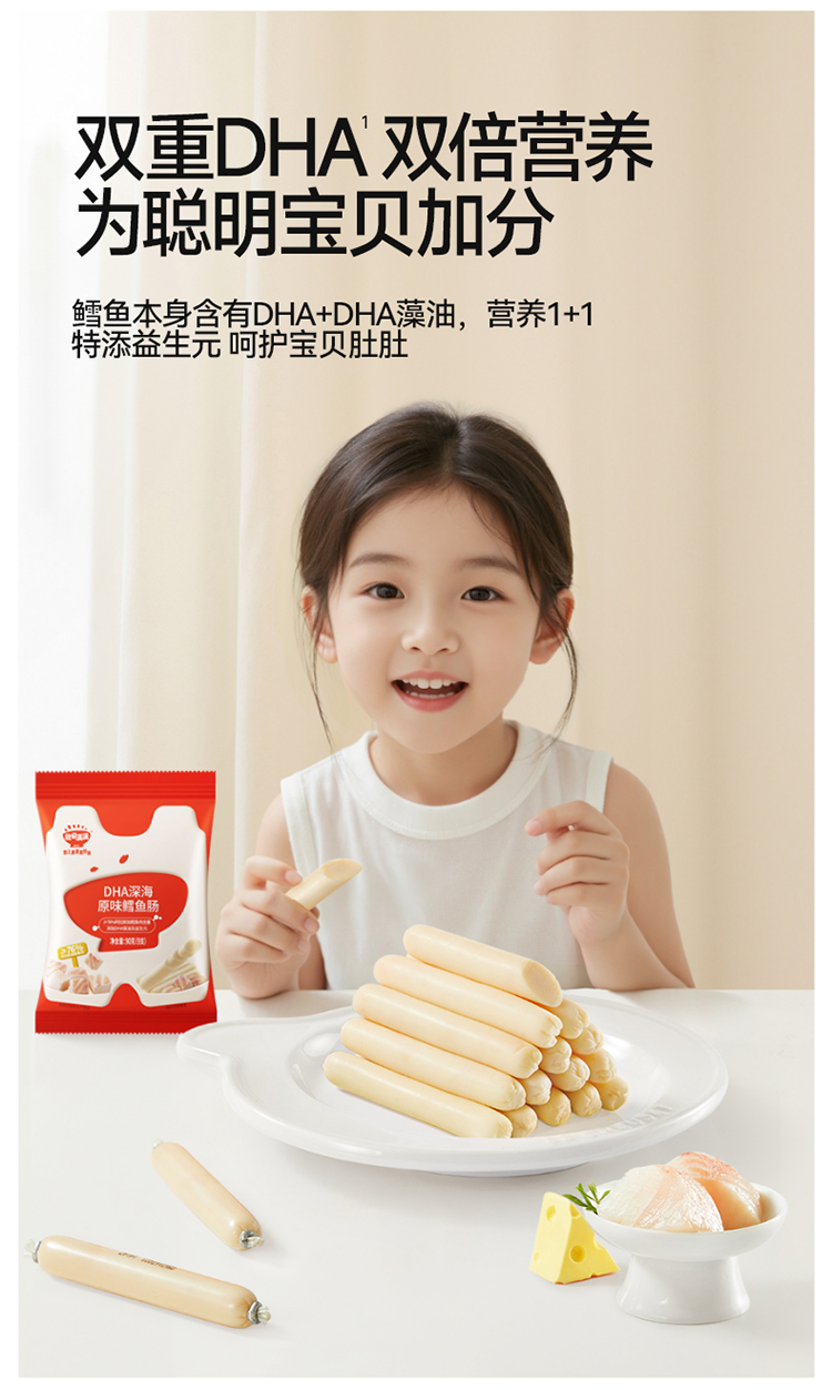 【⚡19.9秒杀 2袋】DHA深海鳕鱼肠原味/芝士味 90g*2,叠加店铺满赠,不叠加店铺满减和会员折扣