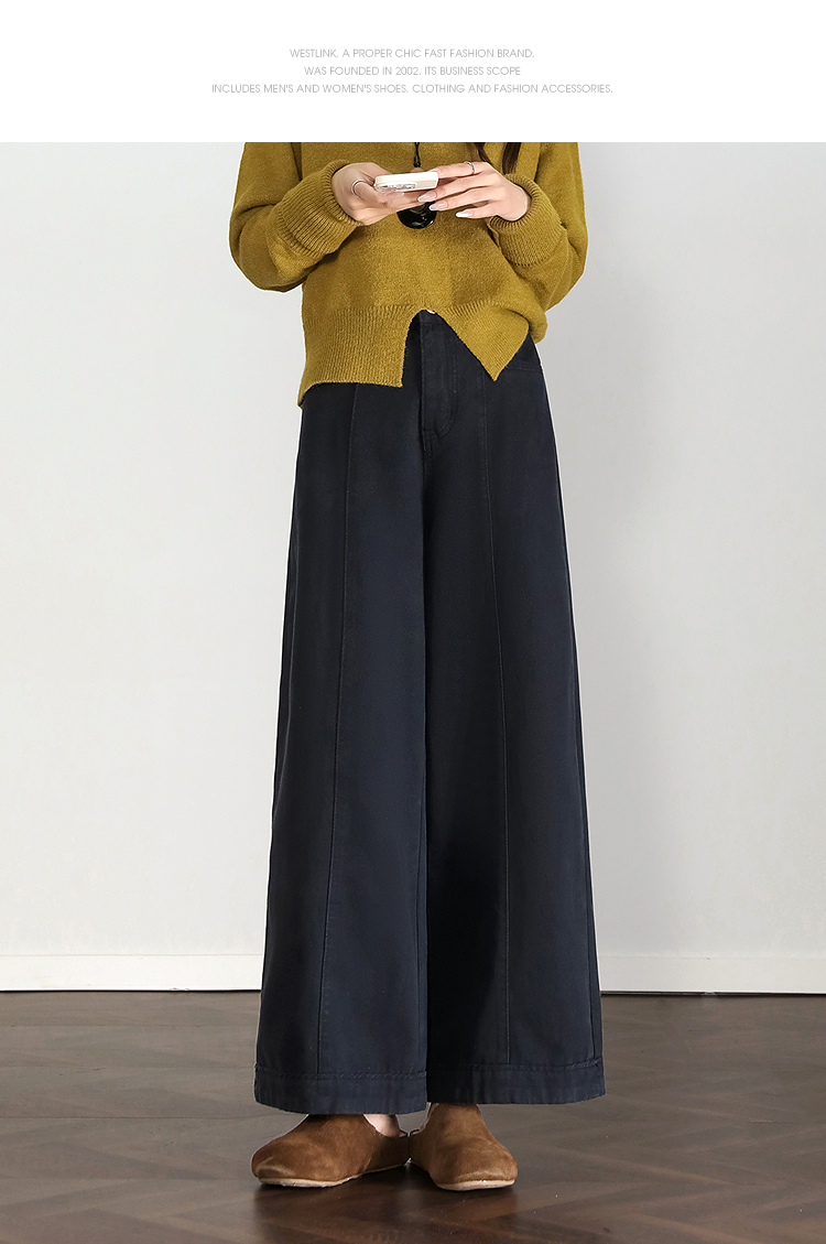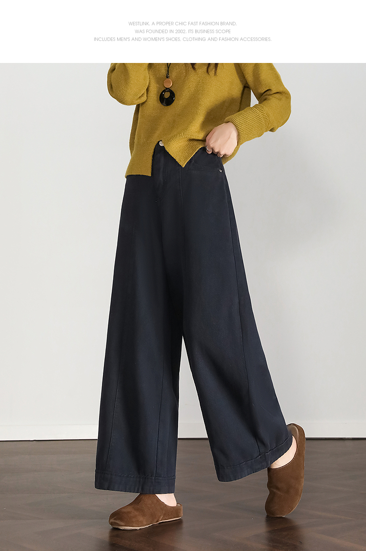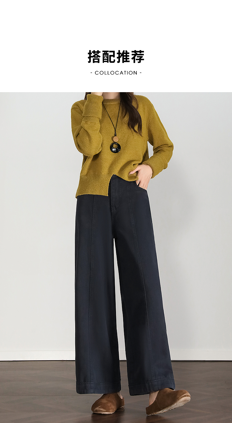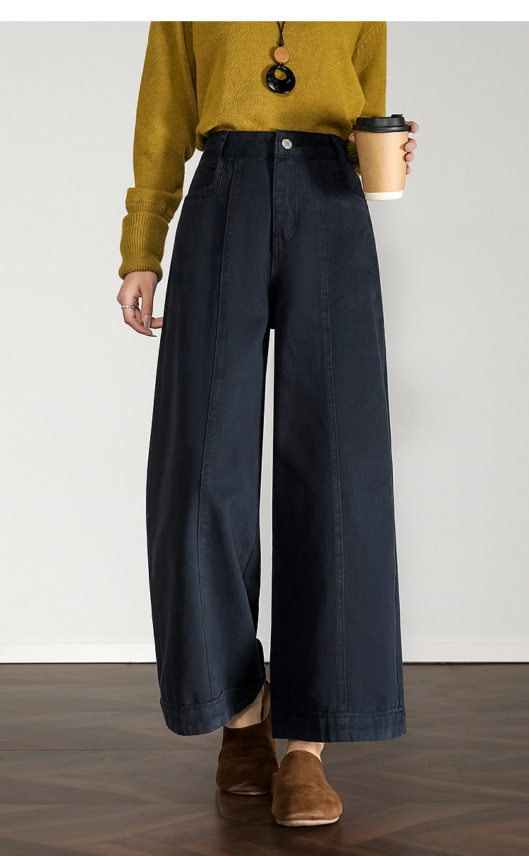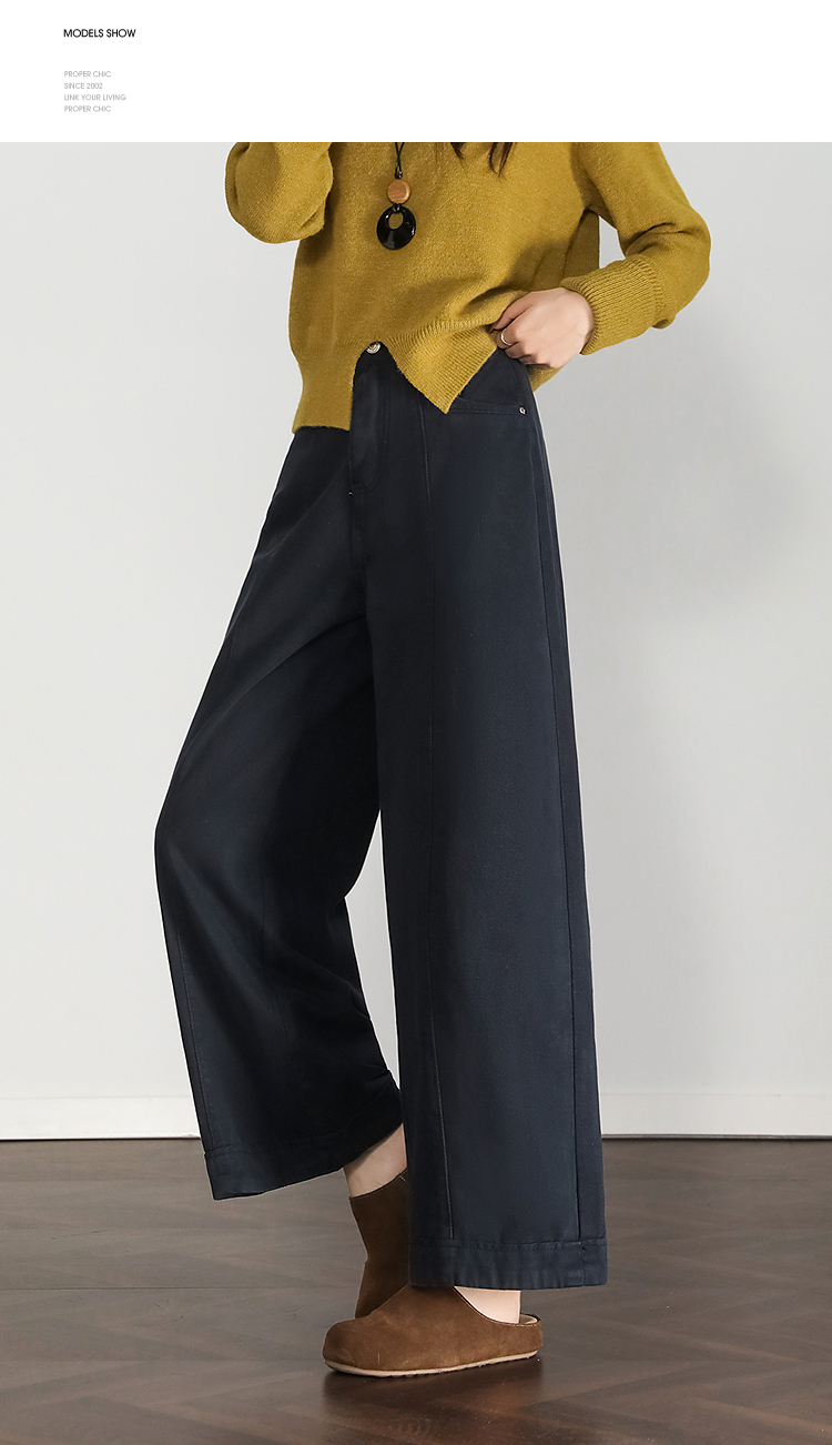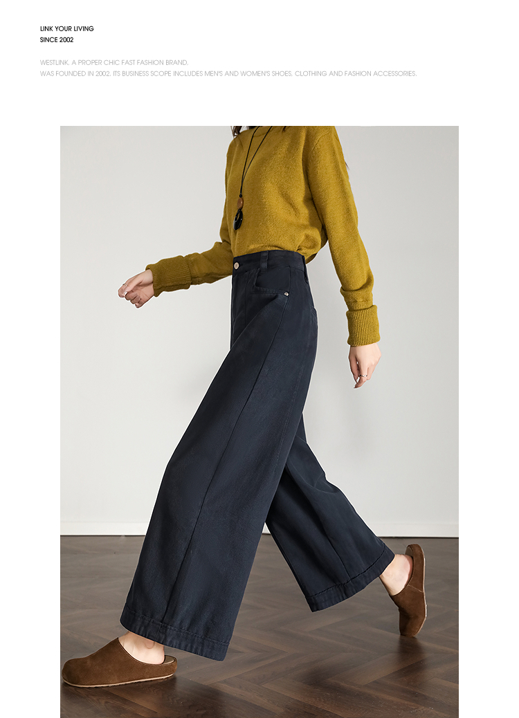 西遇复古百搭休闲裤女秋季新款高腰宽松直筒阔腿裤九分裤H0055228