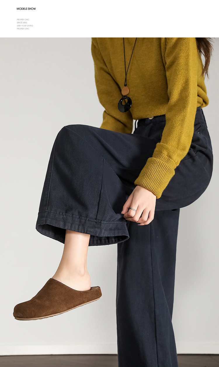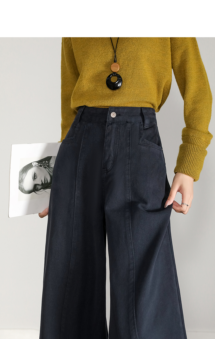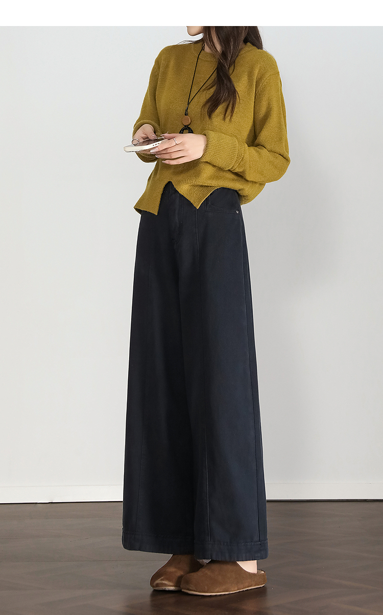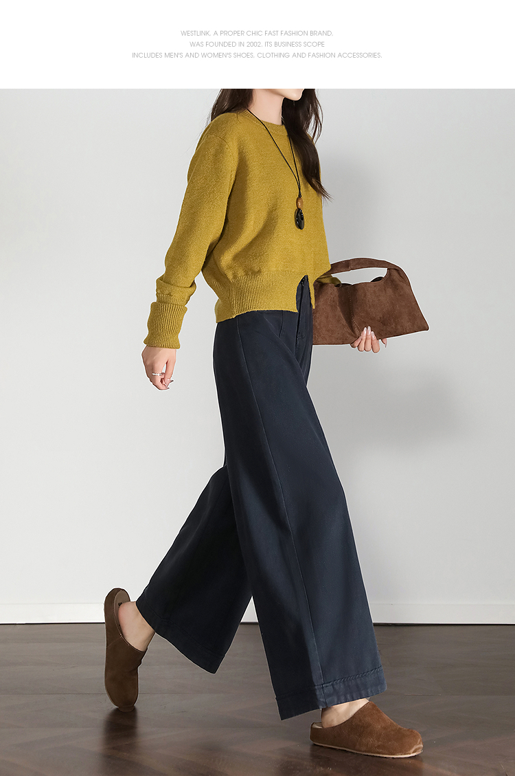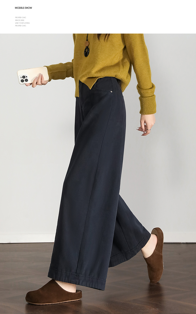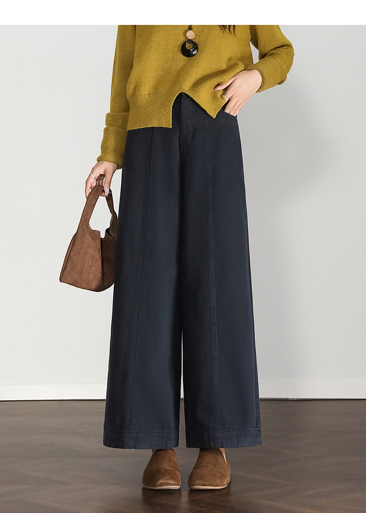 西遇复古百搭休闲裤女秋季新款高腰宽松直筒阔腿裤九分裤H0055228