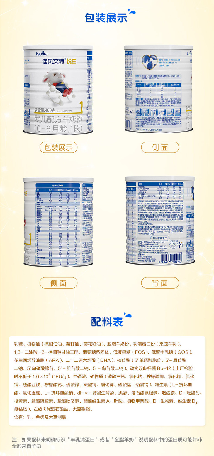 佳贝艾特金装1段400克