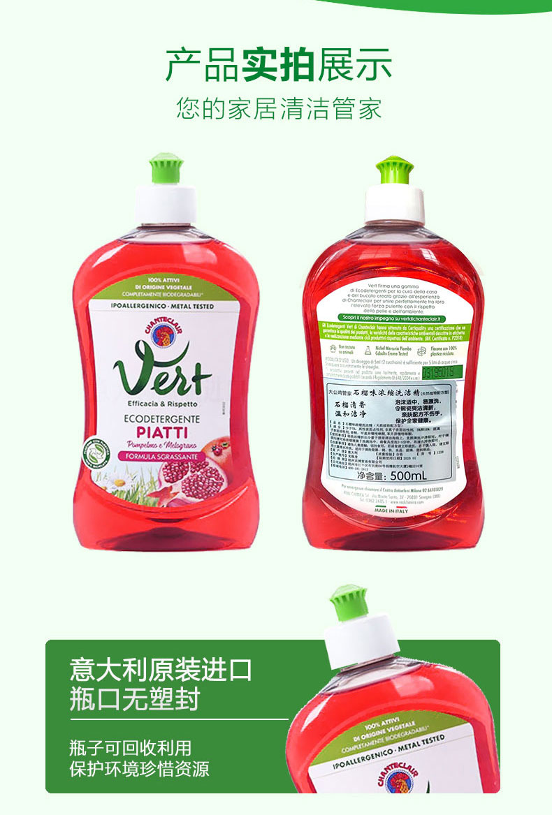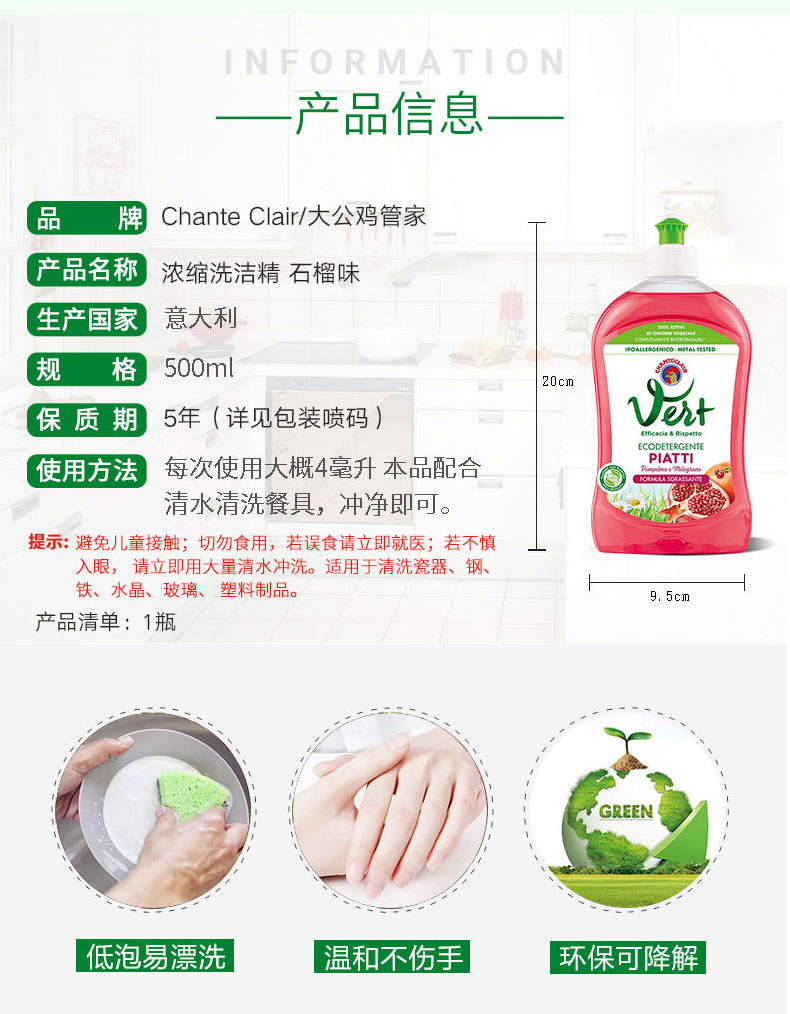 【大公鸡洗洁精 】Chante Clair/大公鸡管家意大利浓缩洗洁精 500ml