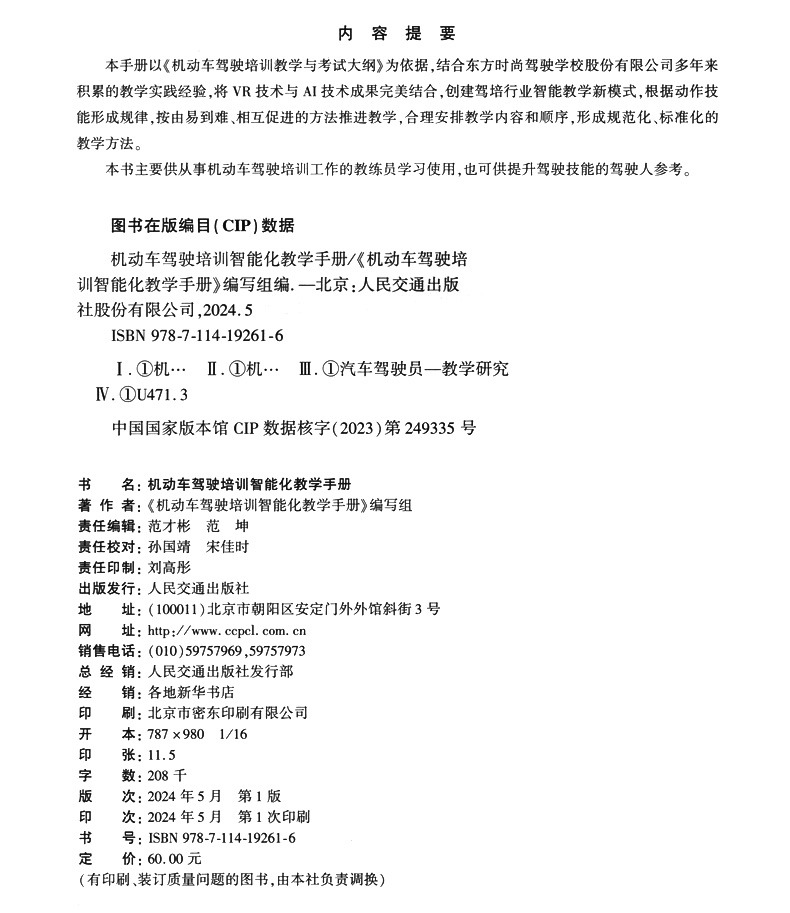 书名:机动车驾驶培训智能化教学手册