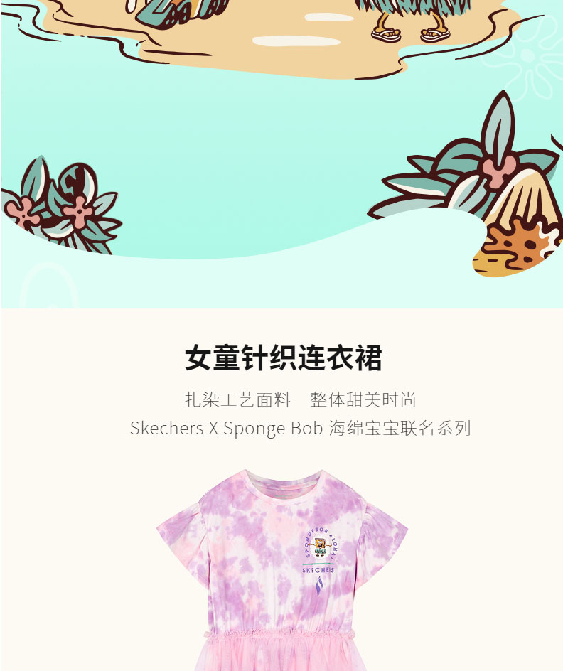小斯凯奇【海绵宝宝联名】女童连衣裙夏季新款裙子扎染纱裙L222G059