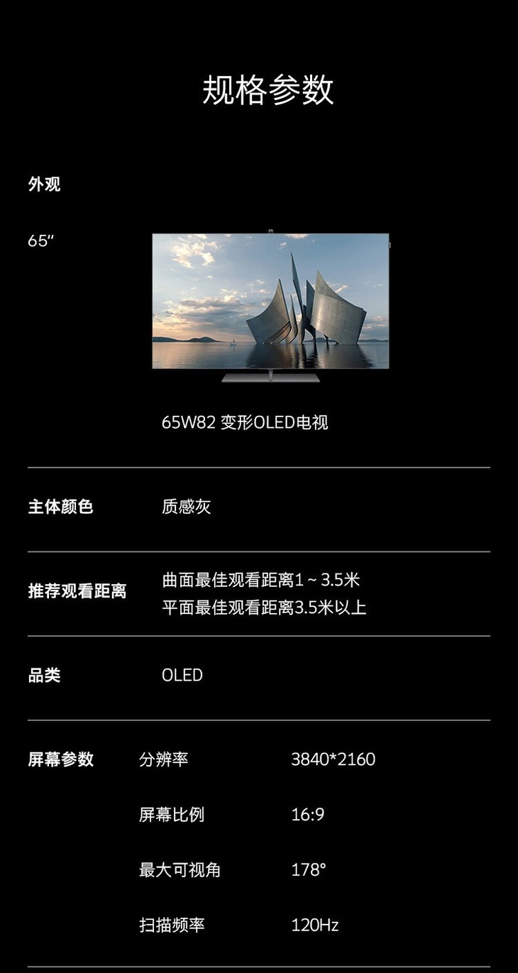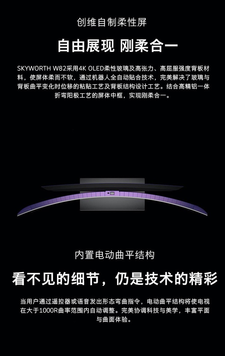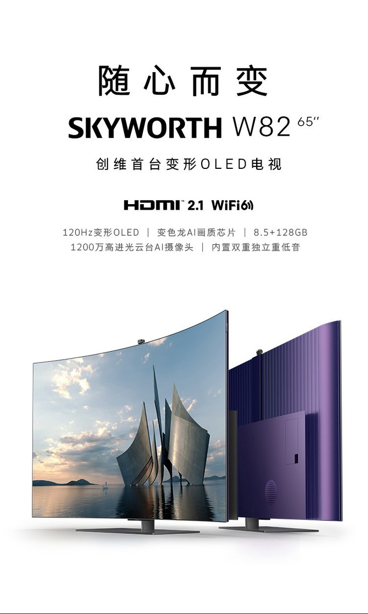 创维(SKYWORTH)65W82 65英寸变形OLED屏无边框全景屏wifi网络护眼蓝光家电互联电视