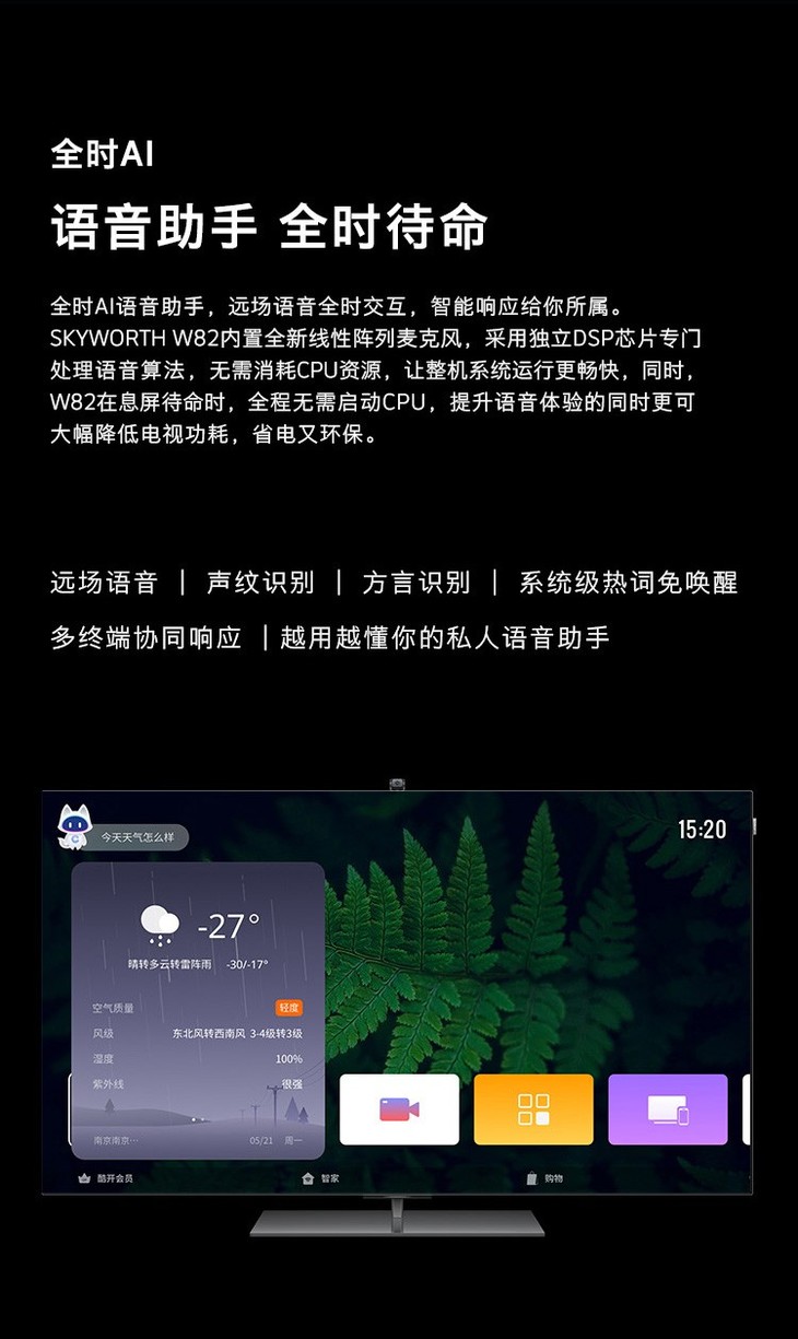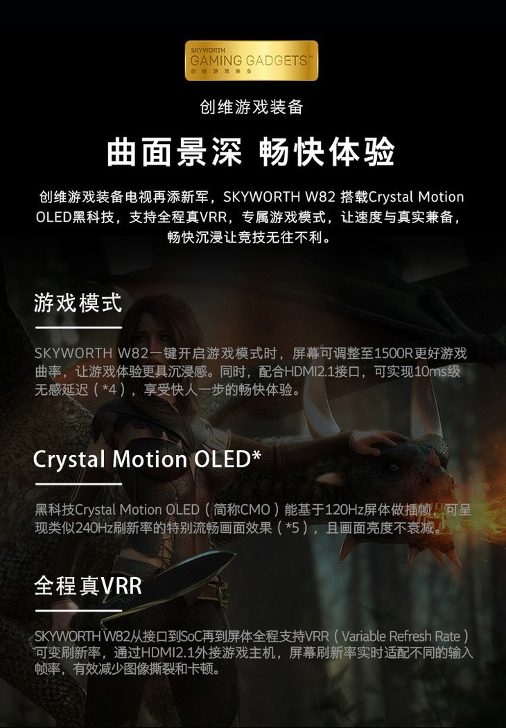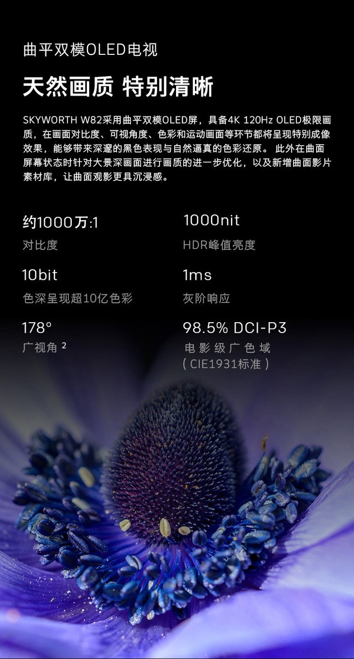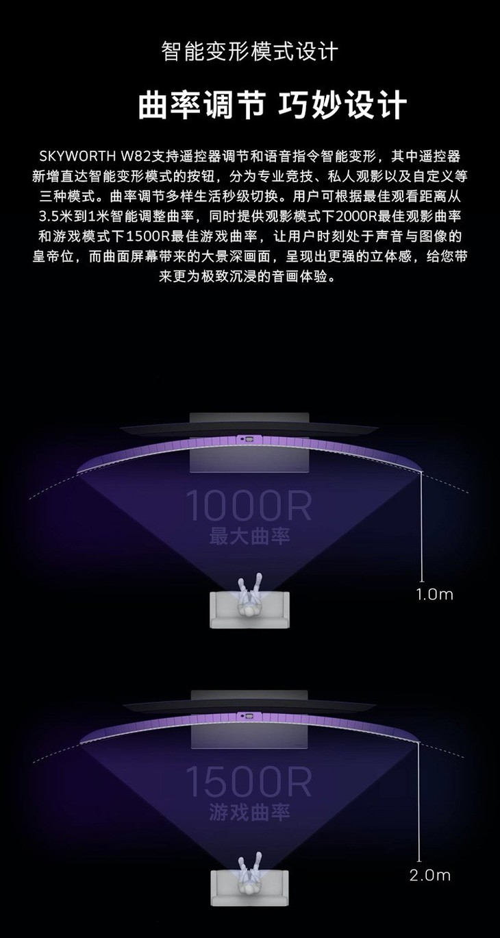 创维(SKYWORTH)65W82 65英寸变形OLED屏无边框全景屏wifi网络护眼蓝光家电互联电视