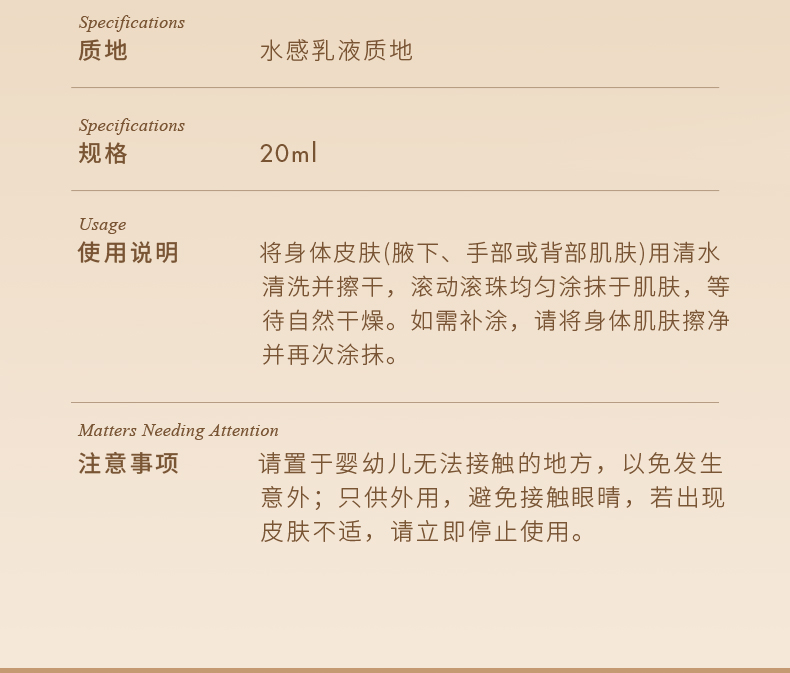 【现货速发】DearIrean 独特艾琳女腋下干爽滚珠留香水走珠液止汗露香体露20ml