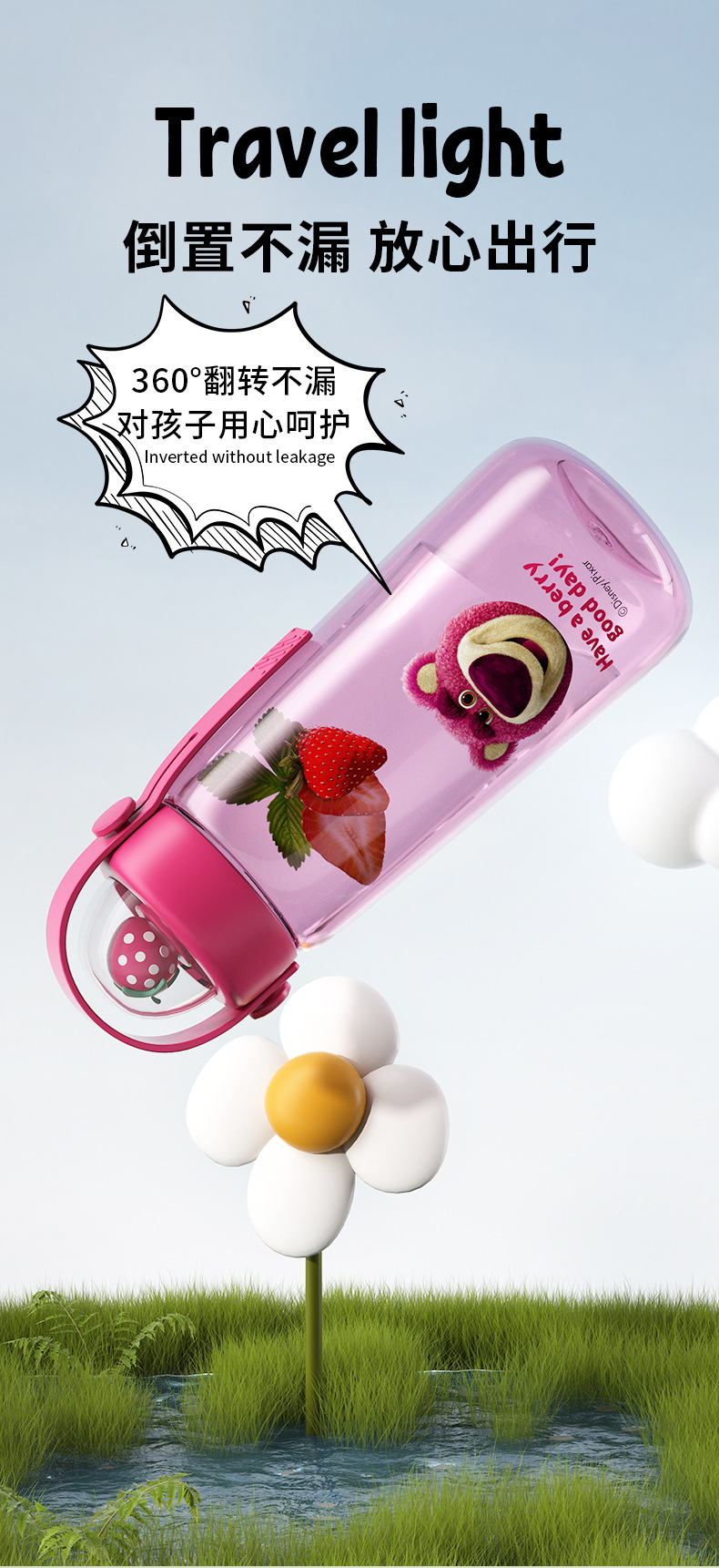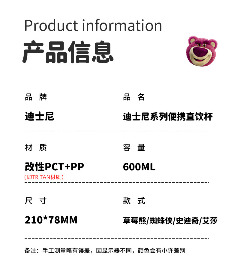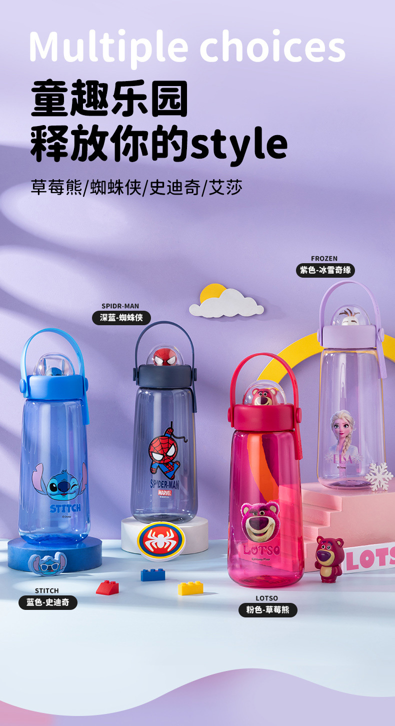 萌趣满分✨迪士尼水杯】TRITAN材质✔高颜值大容量💧倒置不漏水,草莓熊/史迪奇/蜘蛛侠多款任选!孩子们的夏日饮水好伙伴🌟迪士尼儿童水杯 tritan高颜值大容量 学生运动水壶 可爱夏水杯