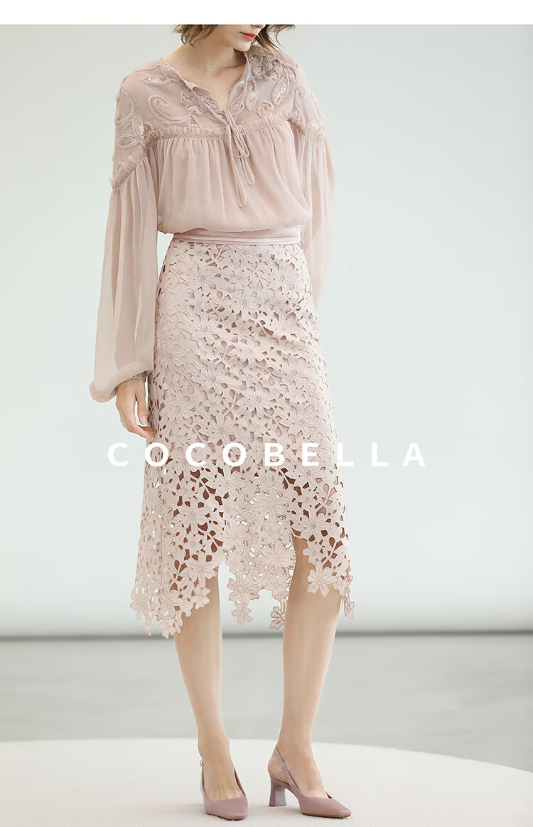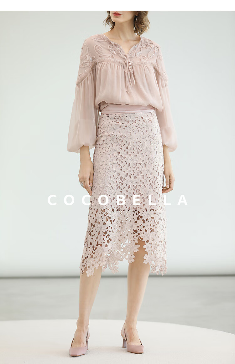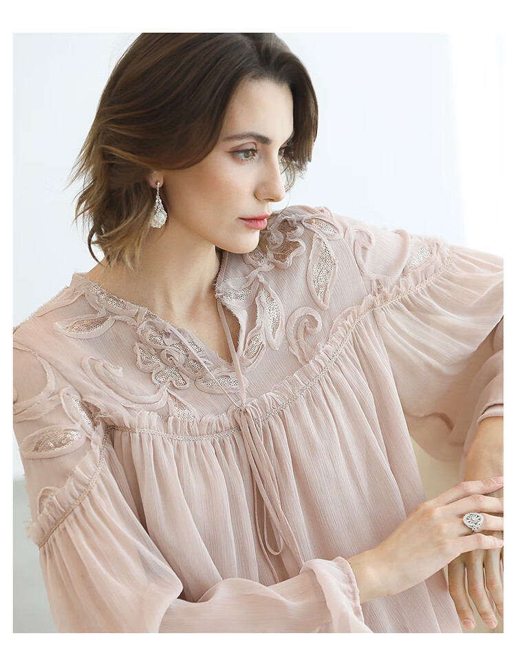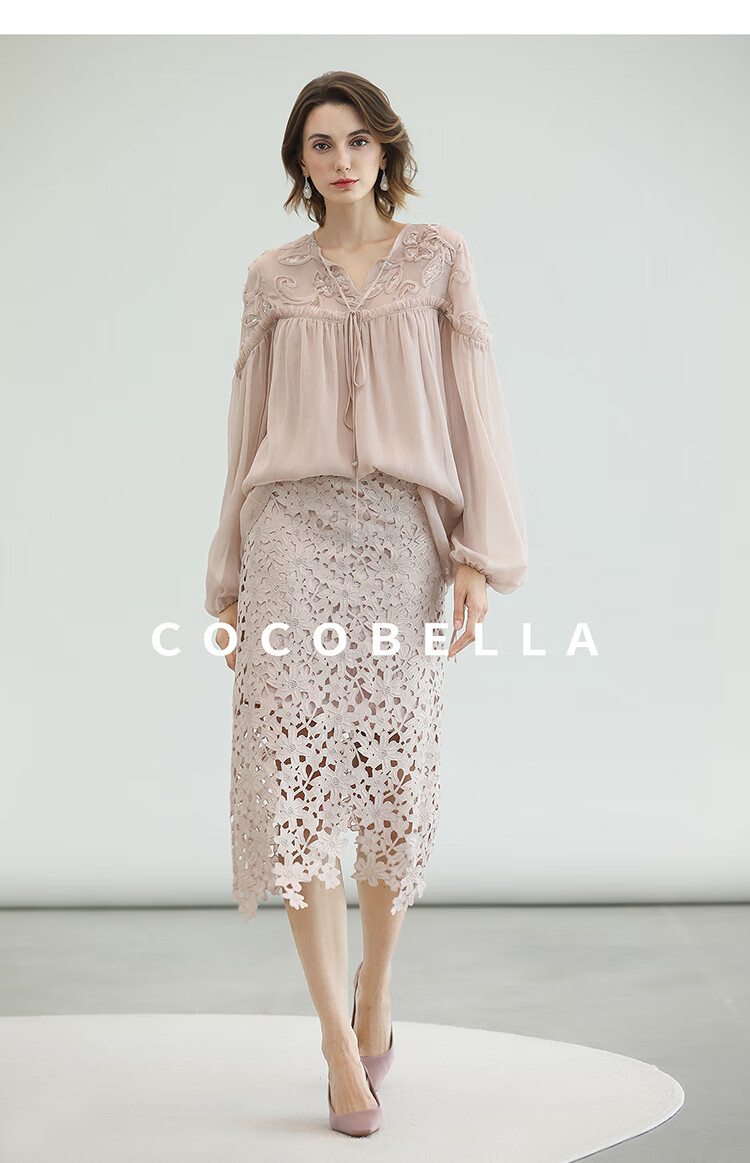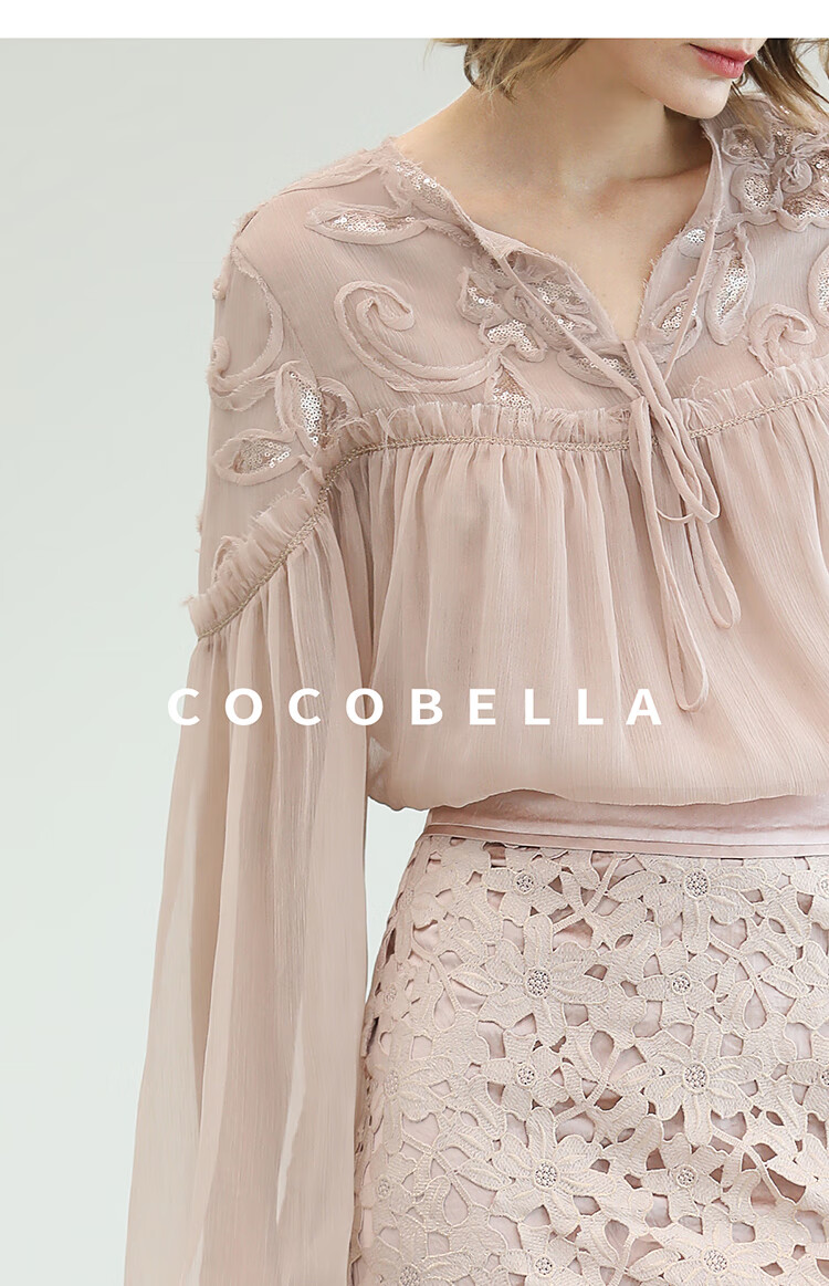 COCOBELLA名媛风玫瑰金盘花刺绣仙女上衣女仿真丝衬衫SR3212