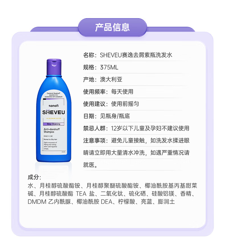 【海豚美购】赛逸selsun 去屑控油紫瓶洗发水375ml