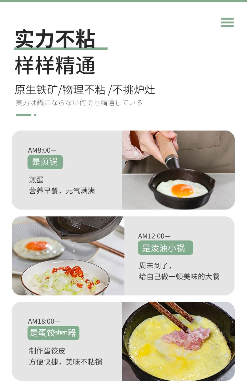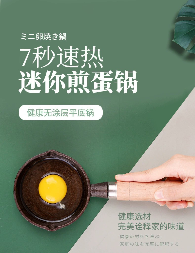 【出口日本煎蛋锅】cooxel 日本铸铁迷你煎蛋锅做蛋饺家用平底不沾锅10cm小号油锅