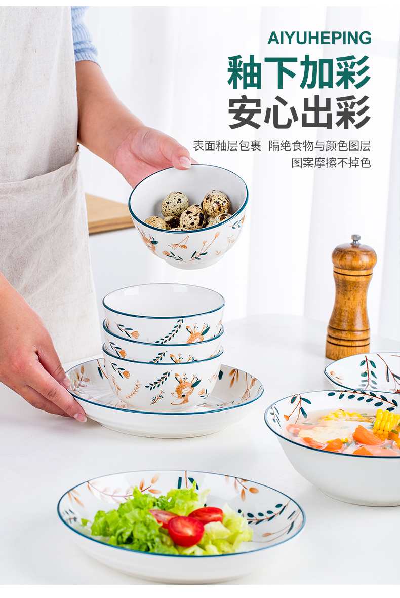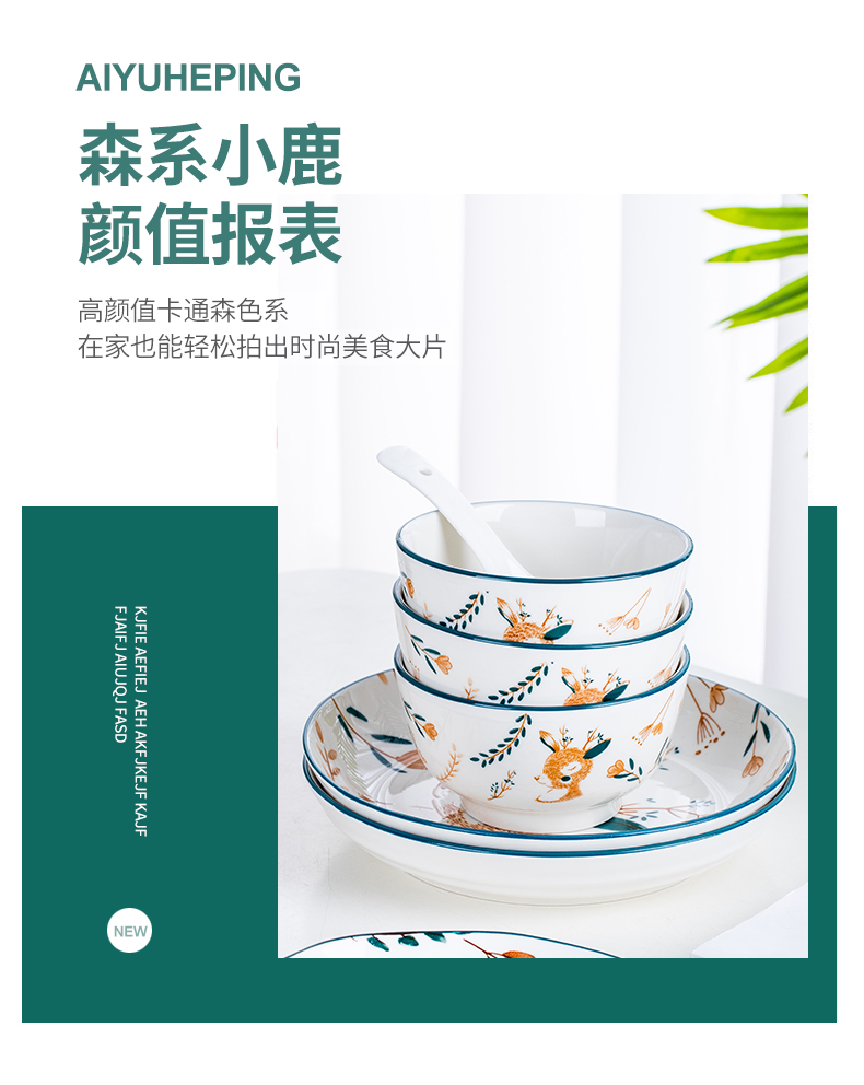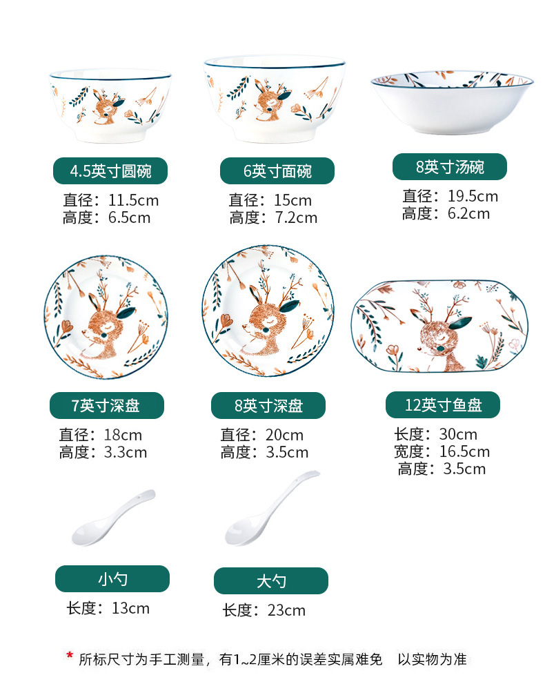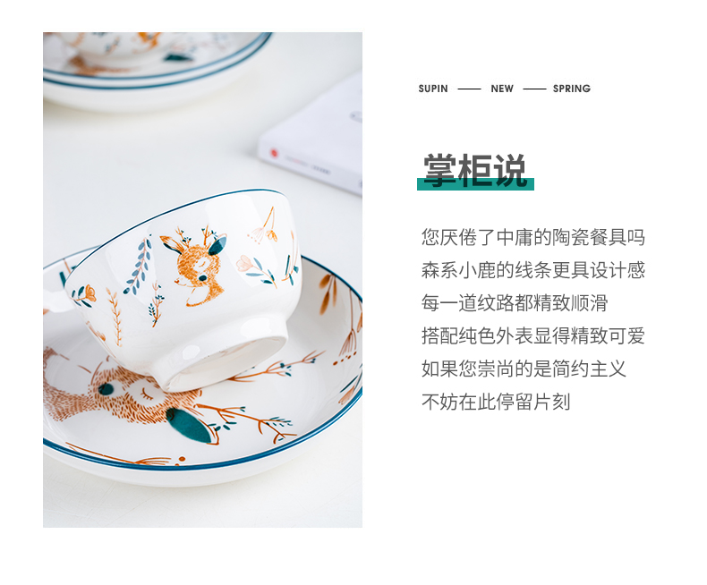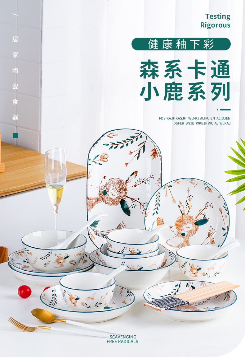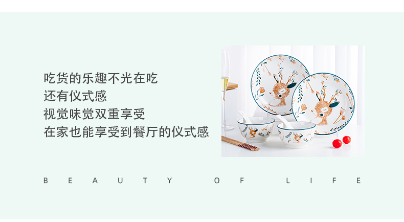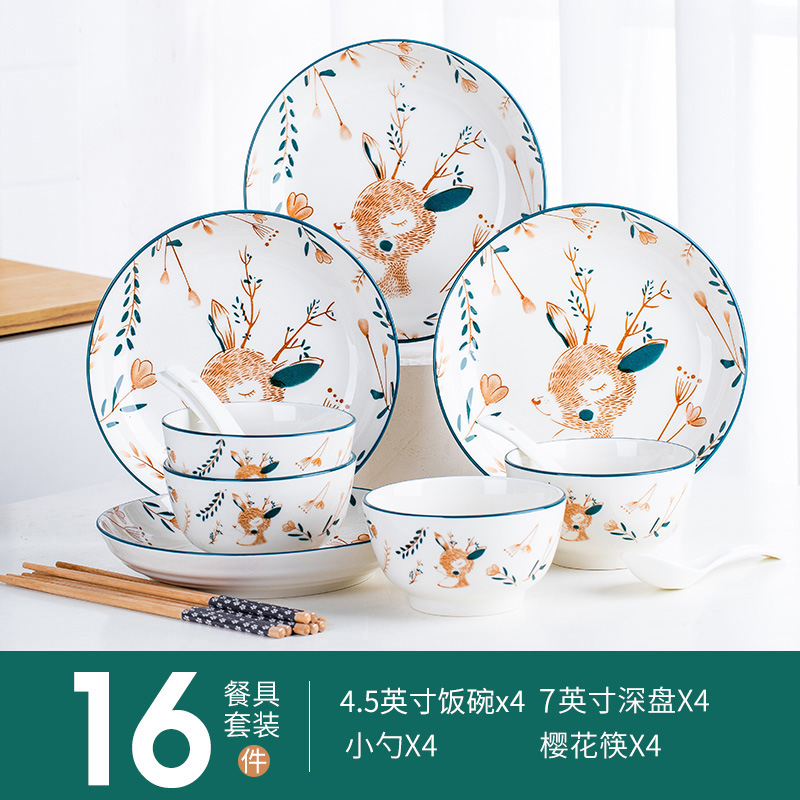 喵梦 一鹿有你16件套餐具组合碗碟套装