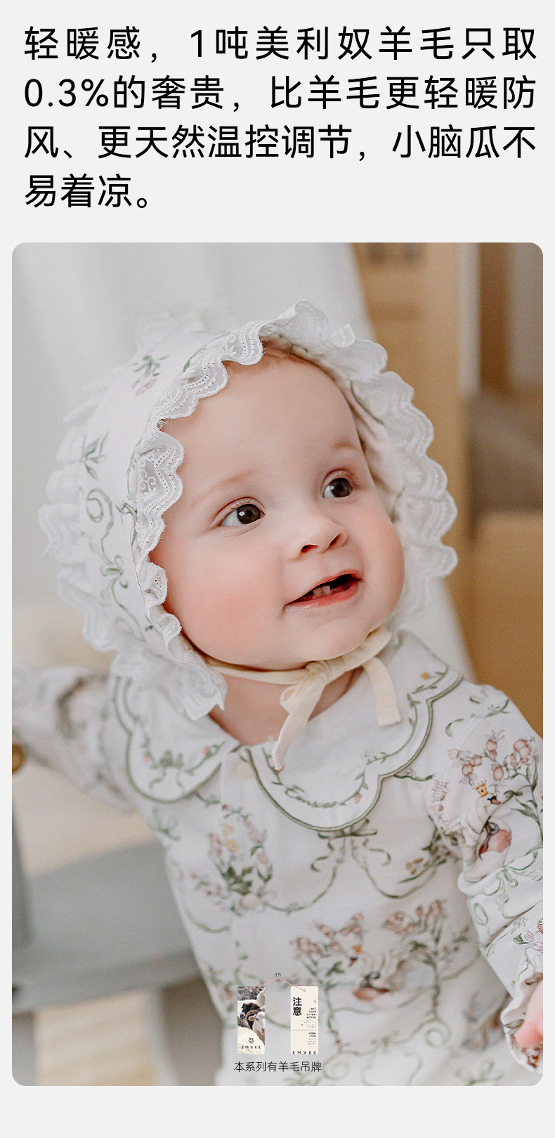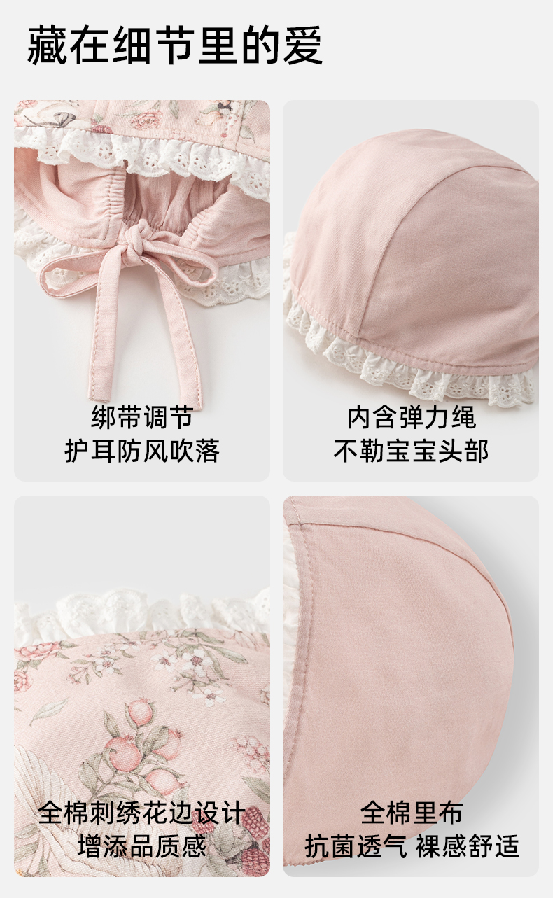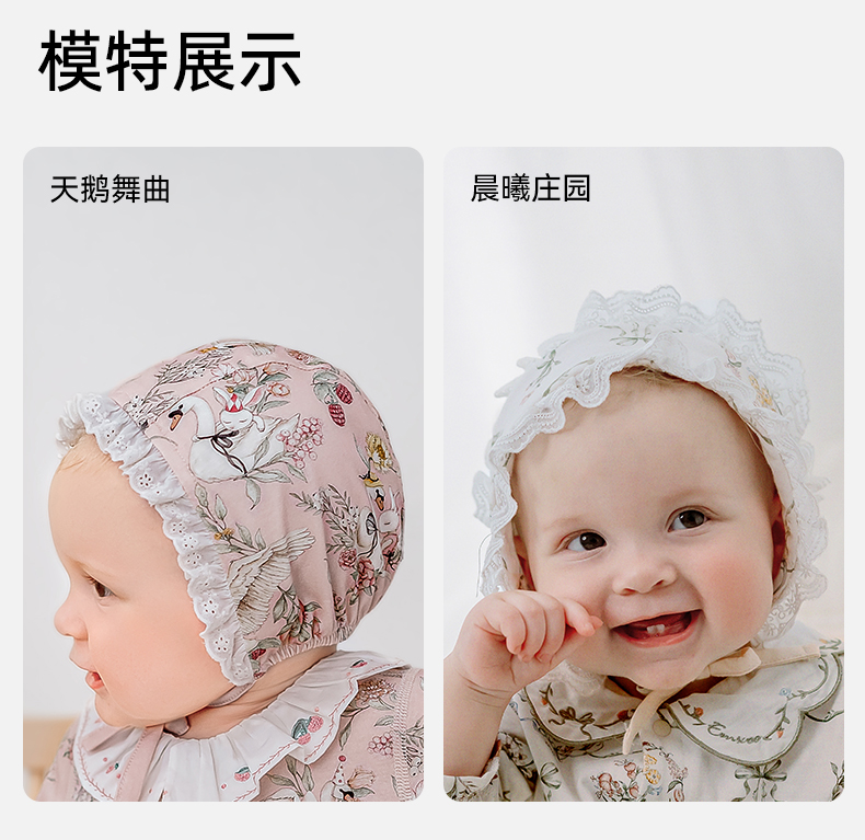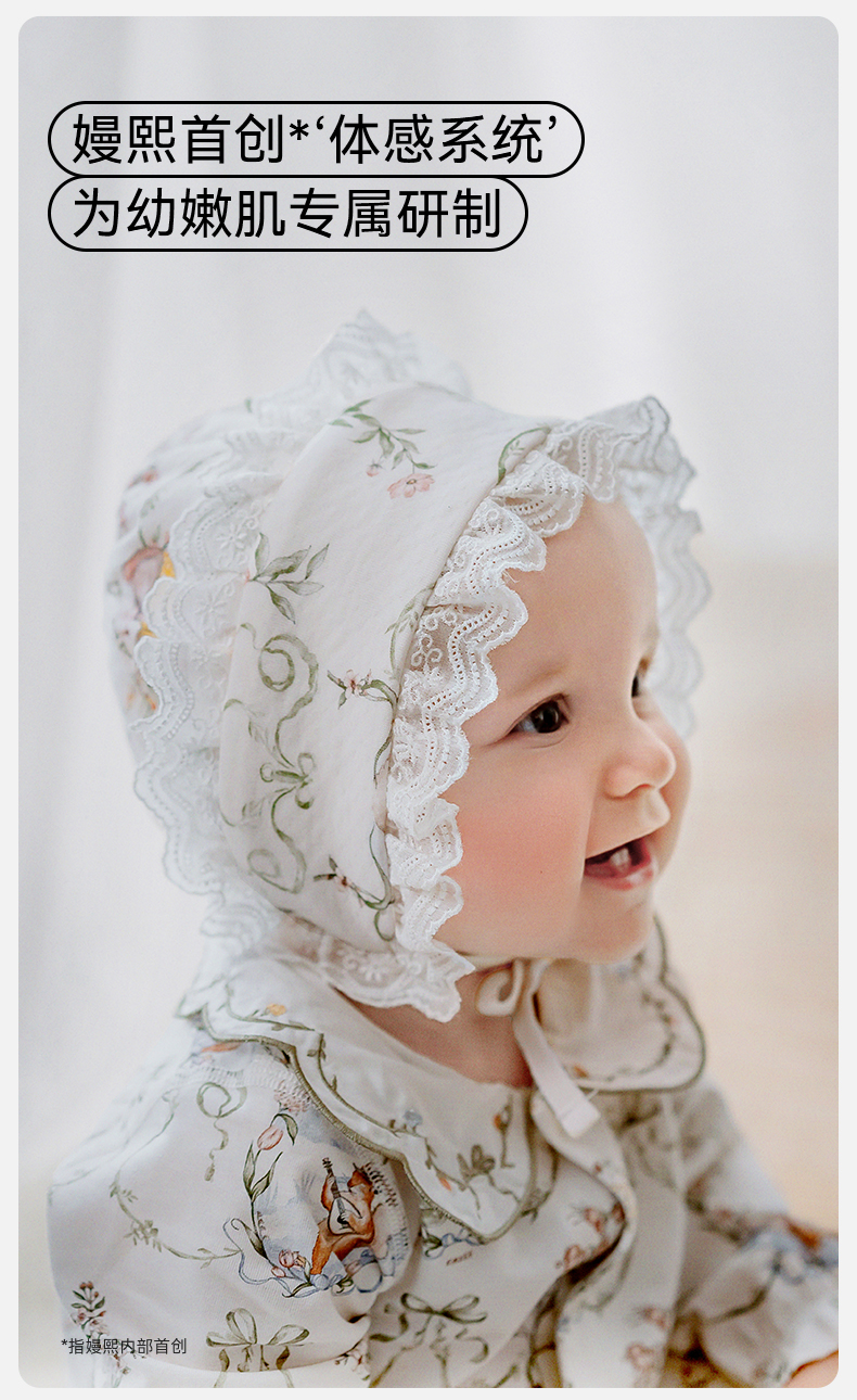 【母婴服配】嫚熙婴童帽子宝宝新生儿天丝羊毛棉春秋保暖胎帽婴儿抗菌花边胎帽