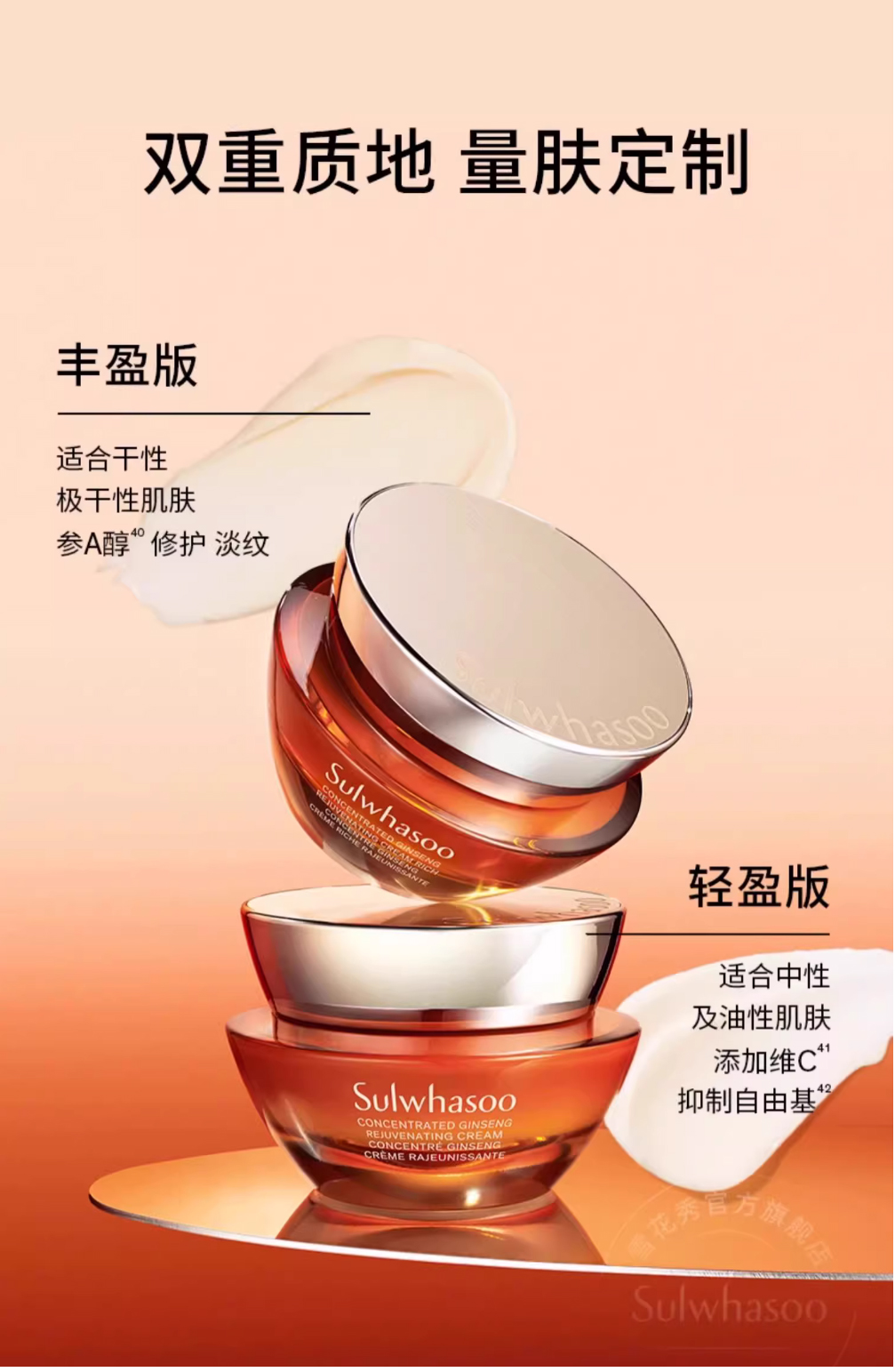 这款分为乳霜轻盈版和面霜滋润款,乳霜比面霜轻薄一些,适合油皮或者混油皮。