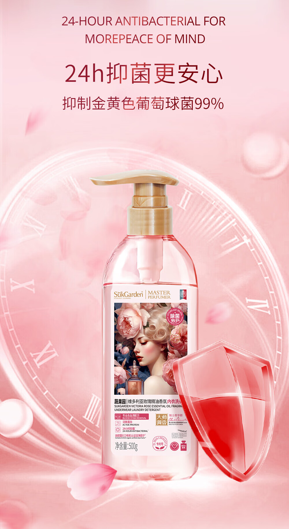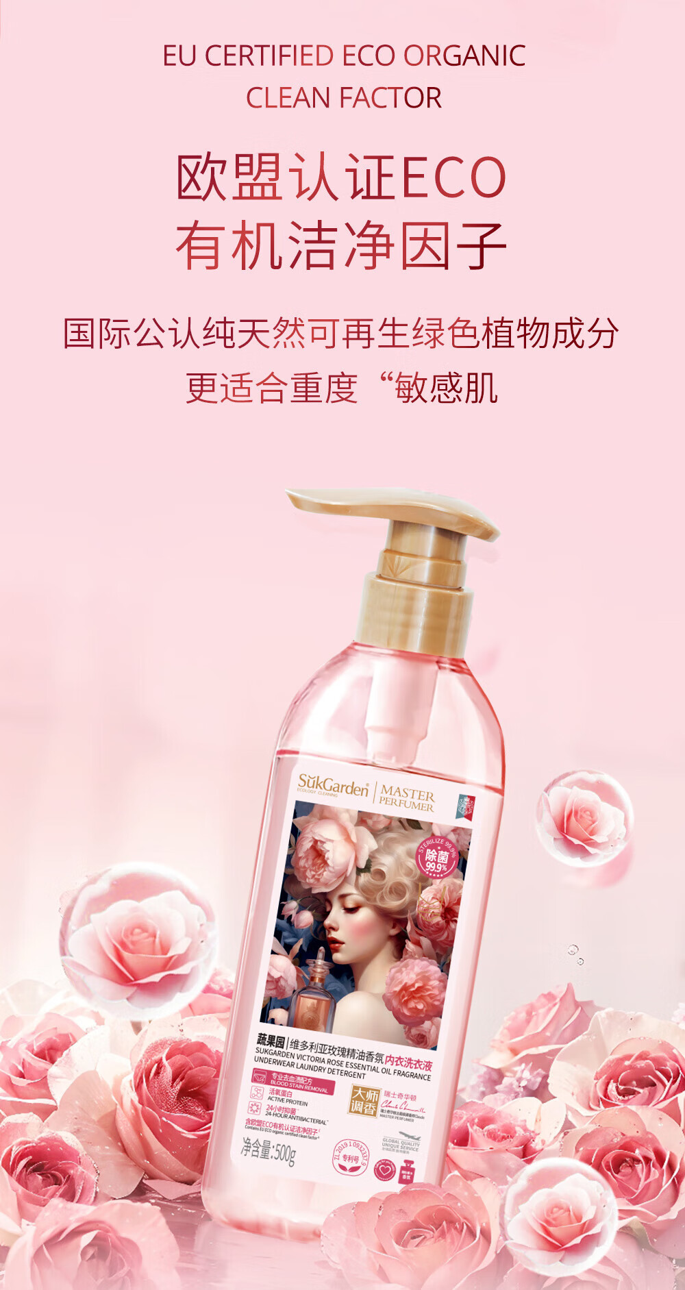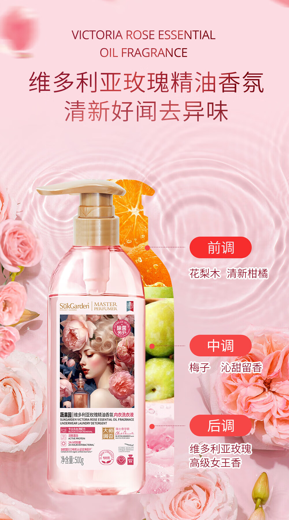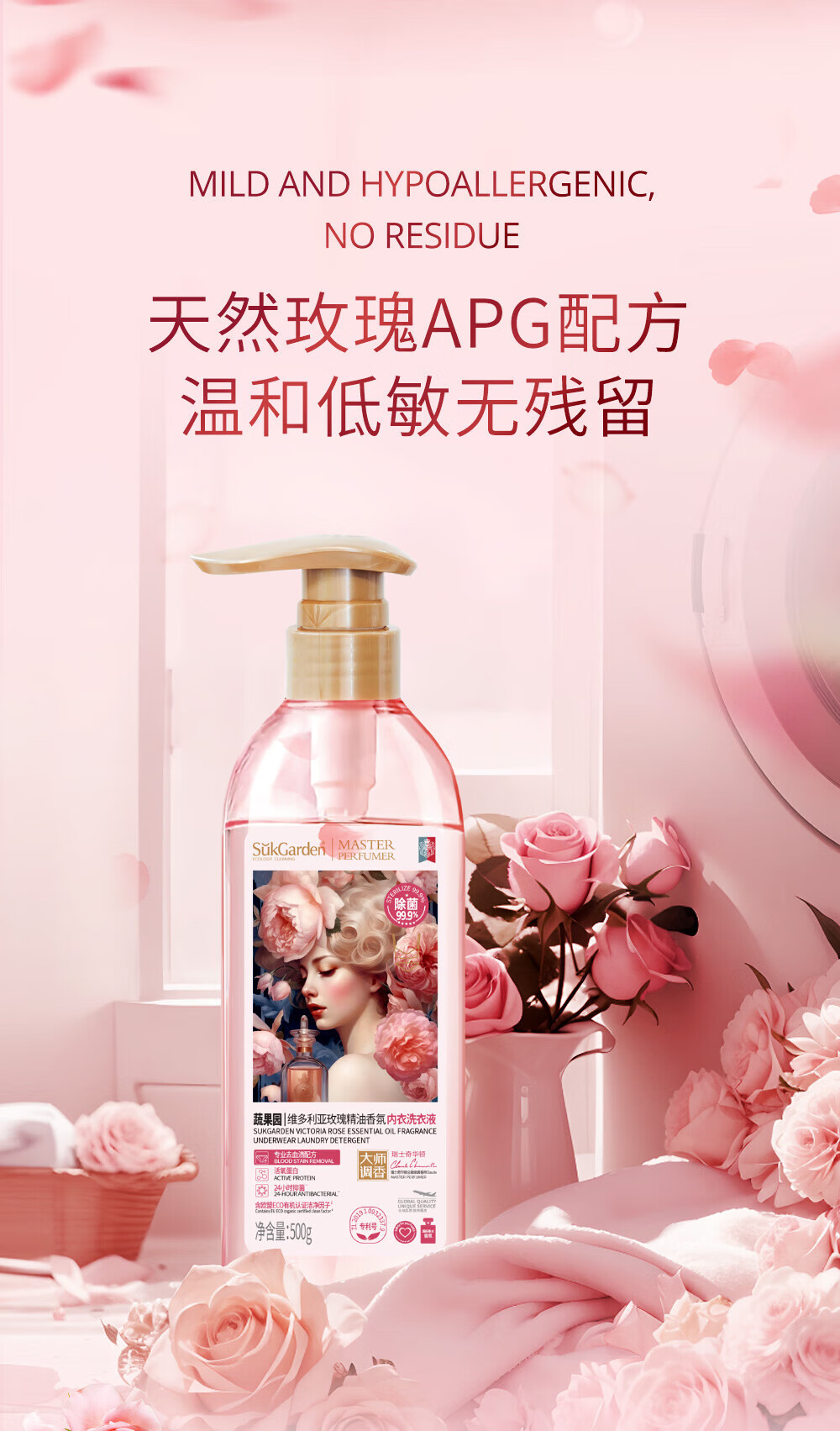 蔬果园玫瑰香氛内衣洗衣液500g/瓶