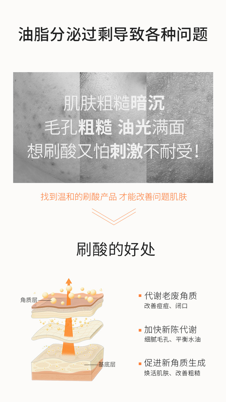 大油皮的很多困扰都是因为皮脂出油量大,酸就是油脂的天敌!!