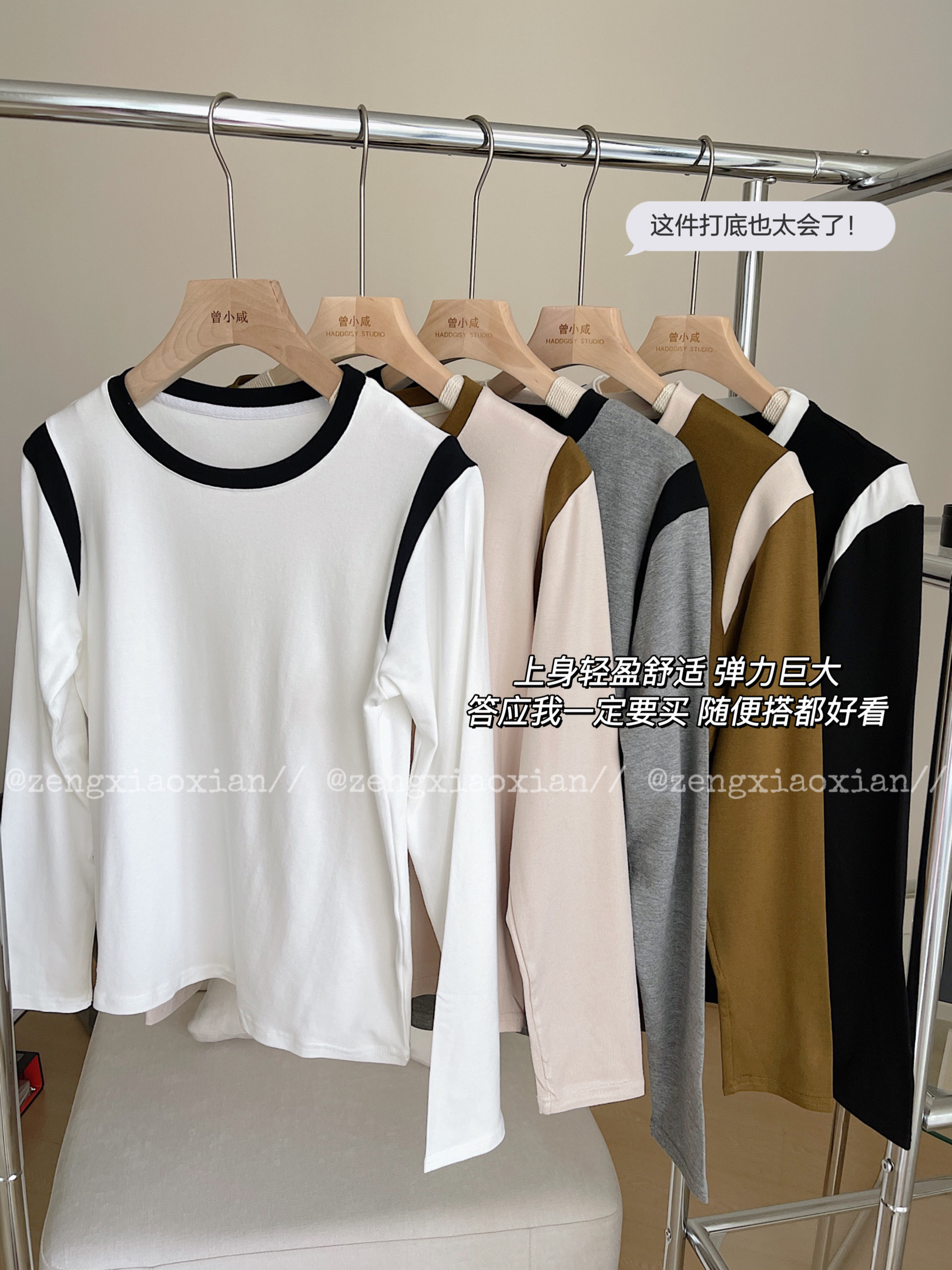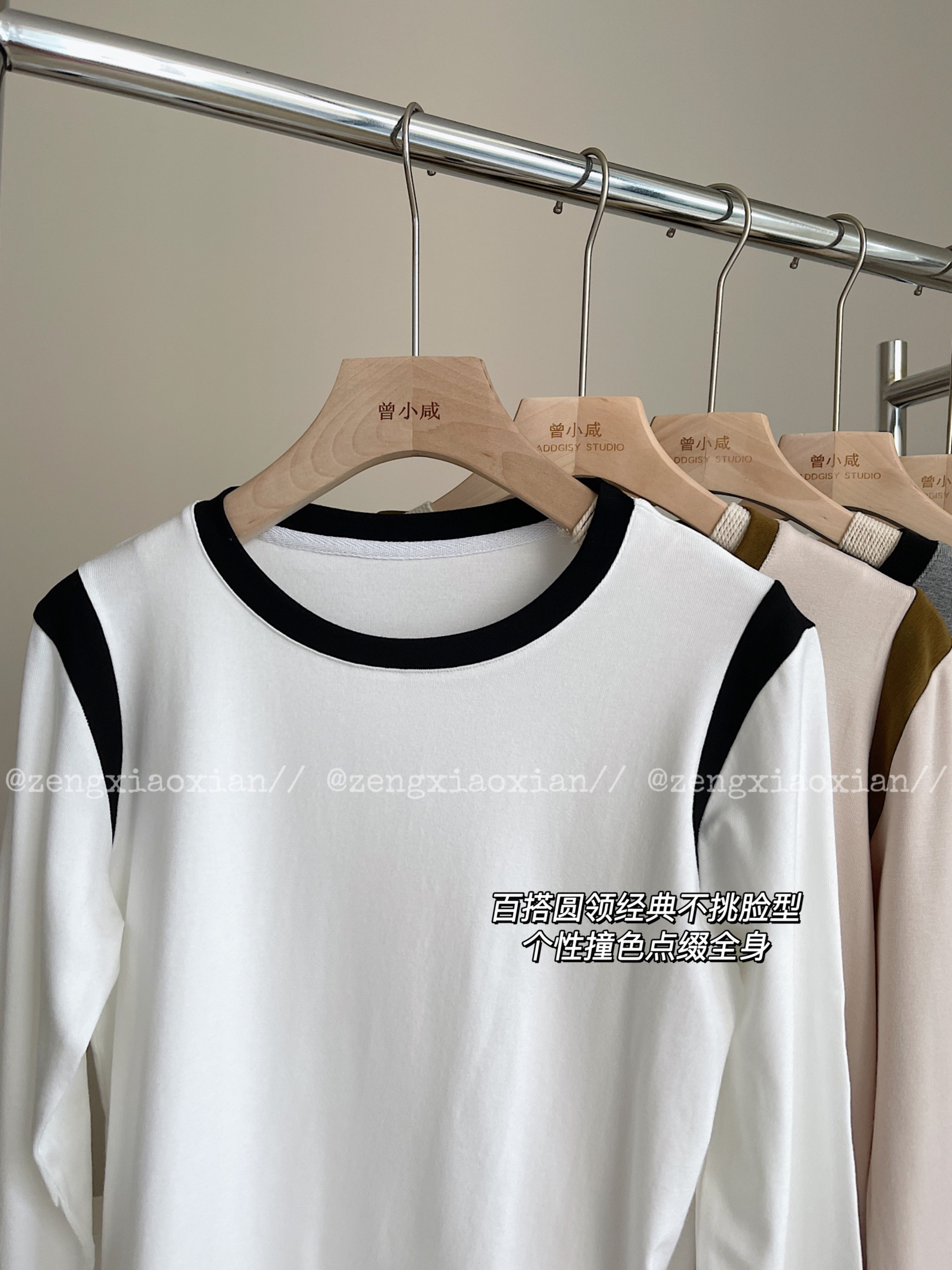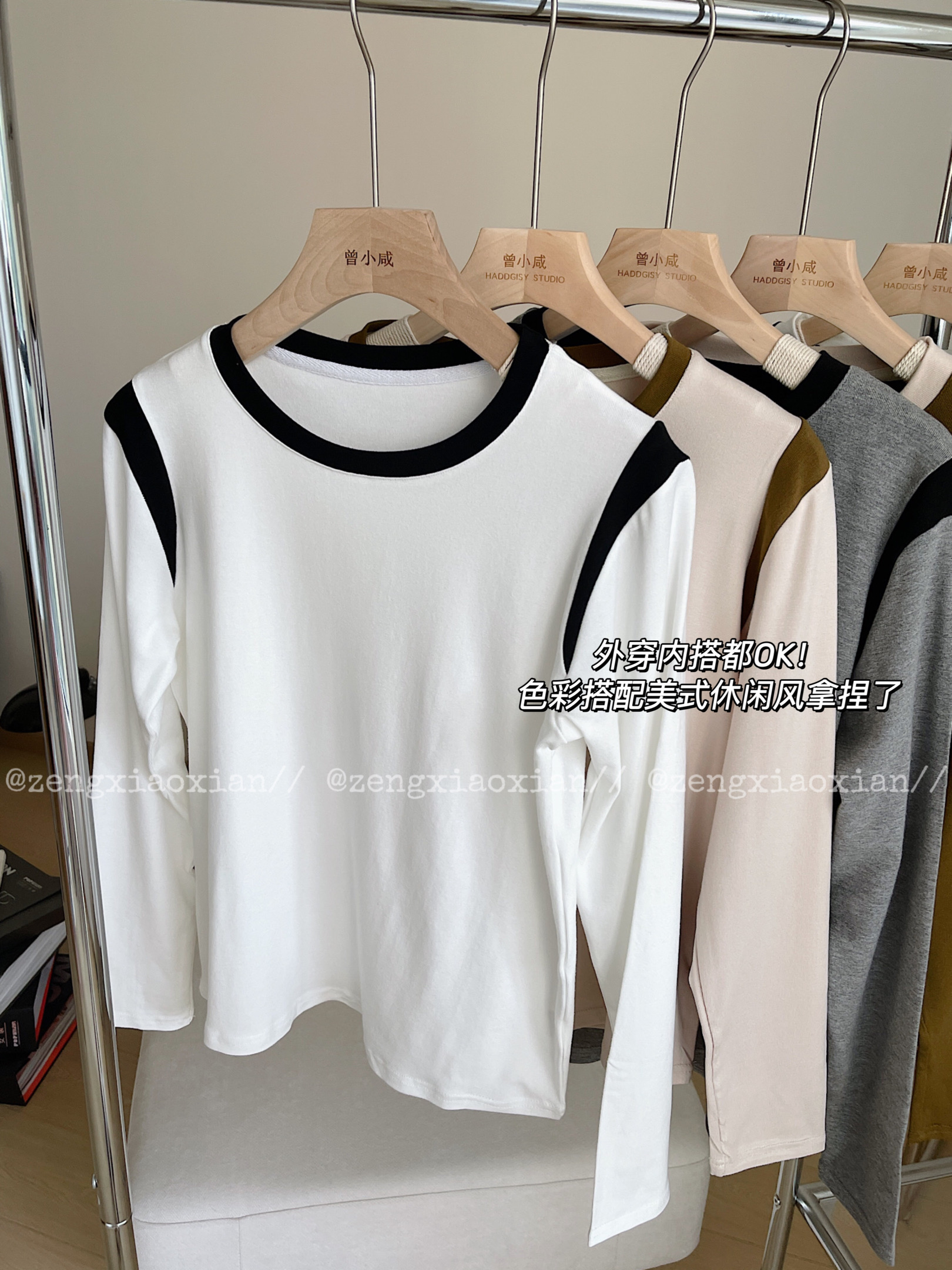 <曾小咸推荐> 美式撞色圆领长袖t恤 日常99/件 前4000单活动价59.99/件 115/2件!【预售款,预计3-15天发货】