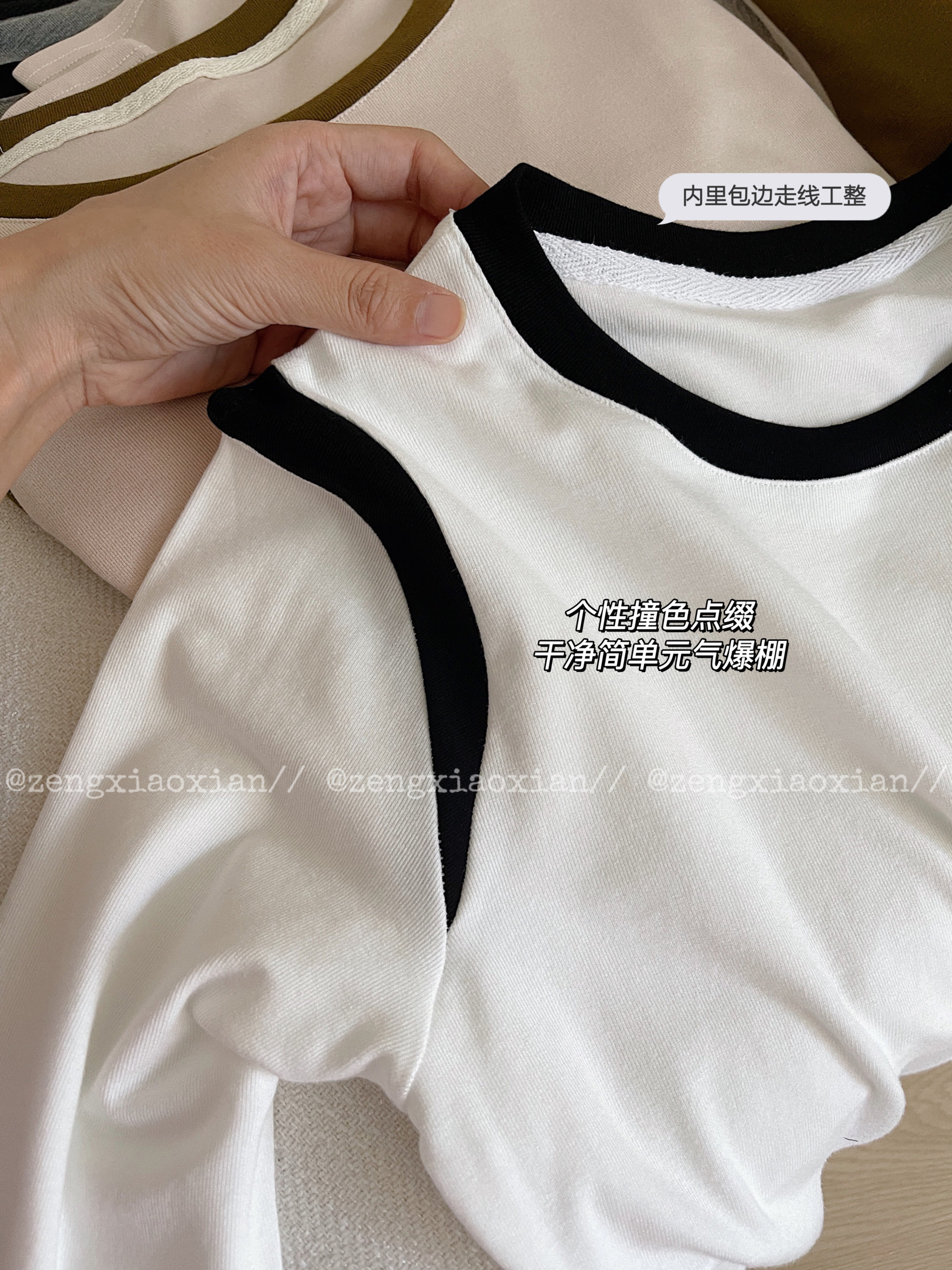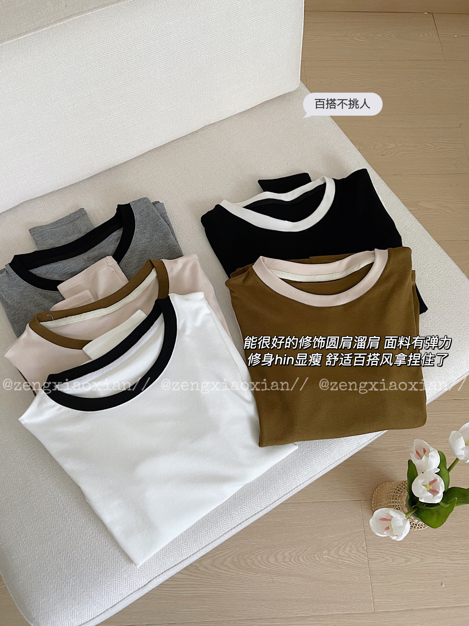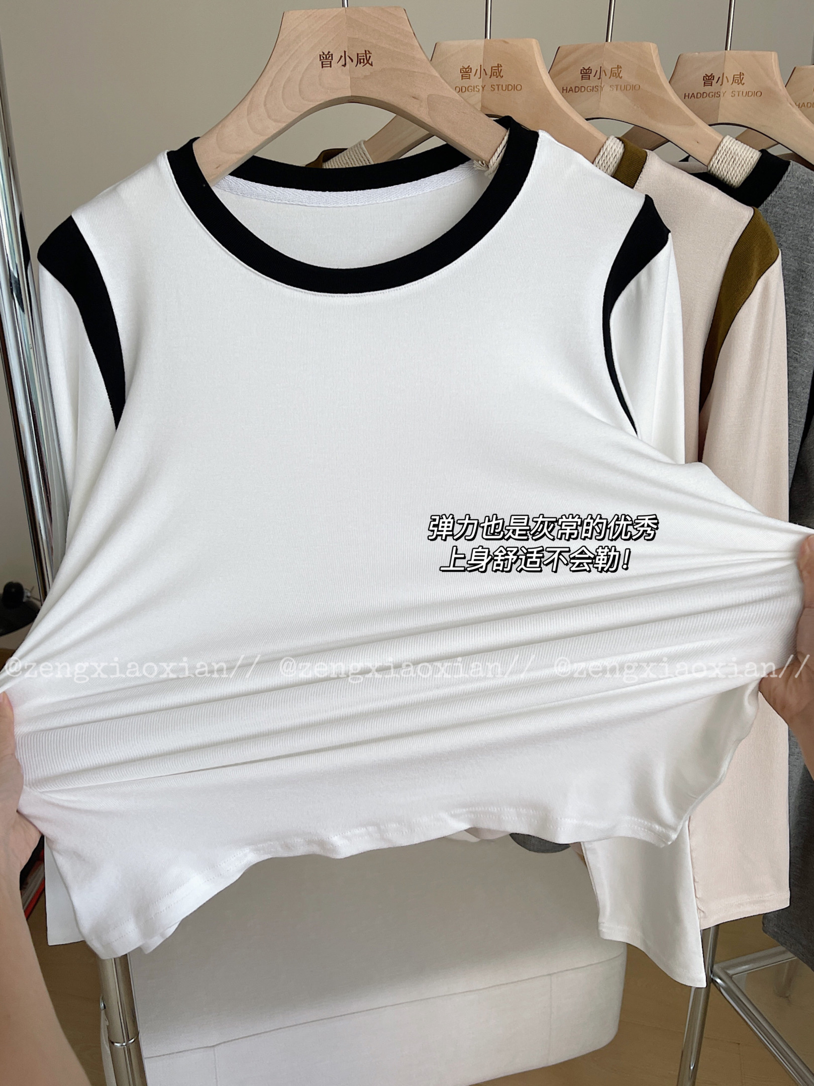 <曾小咸推荐> 美式撞色圆领长袖t恤 日常99/件 前4000单活动价59.99/件 115/2件!【预售款,预计3-15天发货】