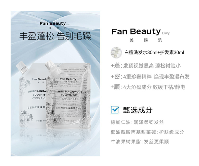 【双十二返场】白檀香氛蓬蓬丰盈洗发水296ml+护发素296ml+护发精油55g