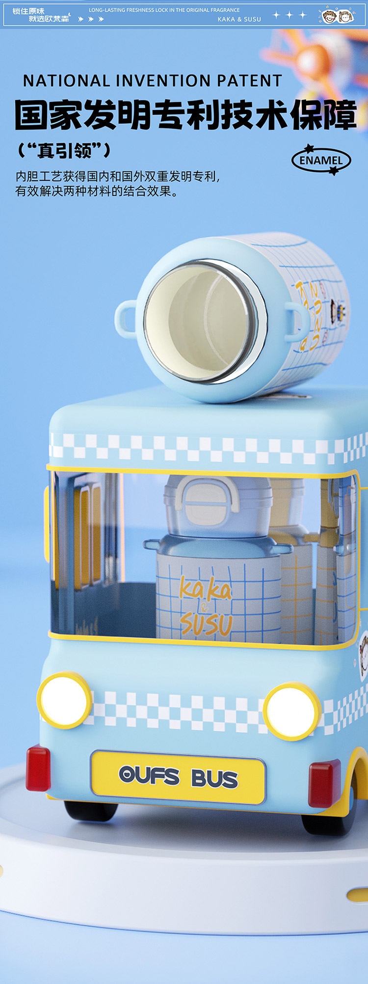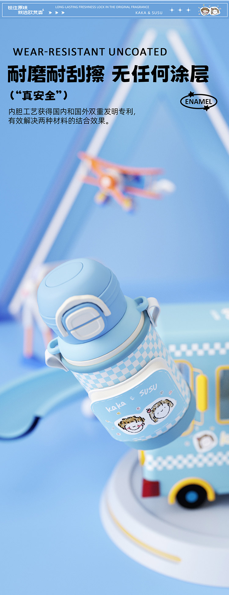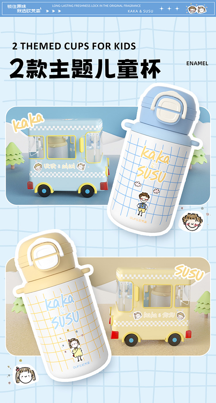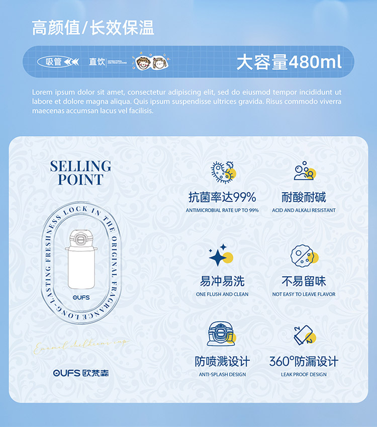 OUFS欧梵森真健康珐琅保温杯 99%抗菌儿童杯宝宝学饮吸管杯高颜值长效保温杯480ml珐琅嘟嘟杯