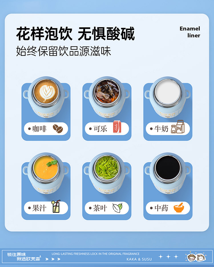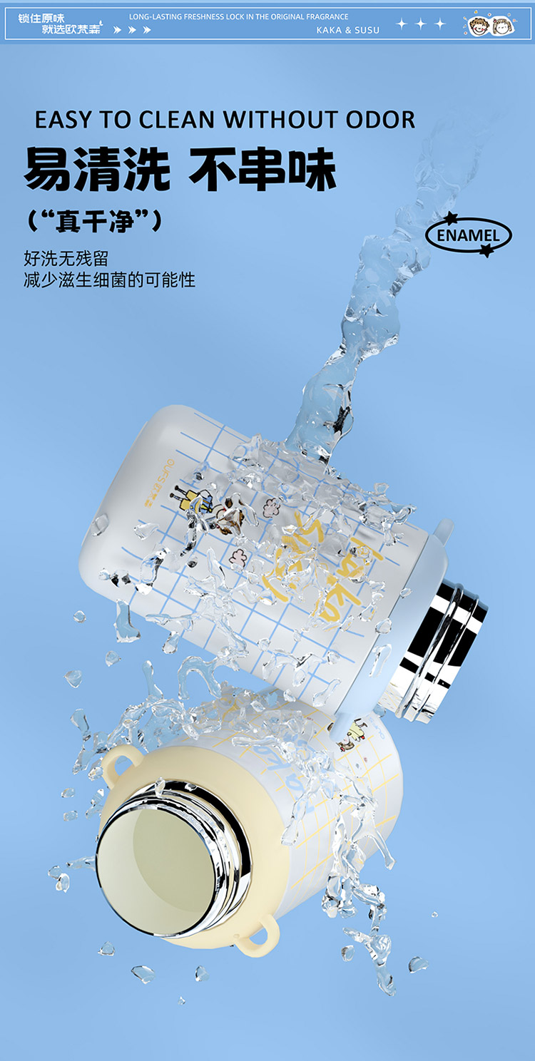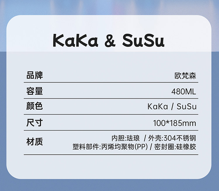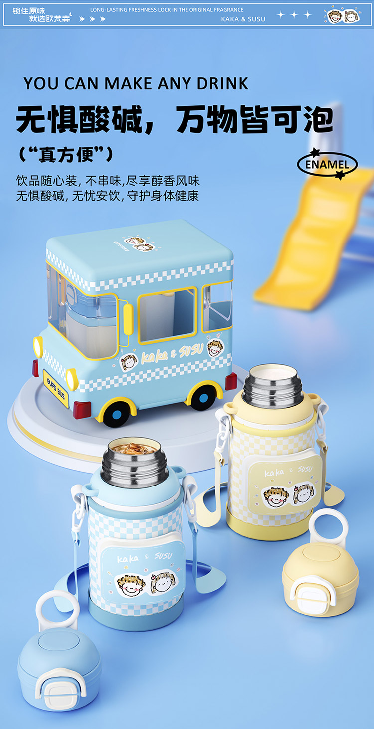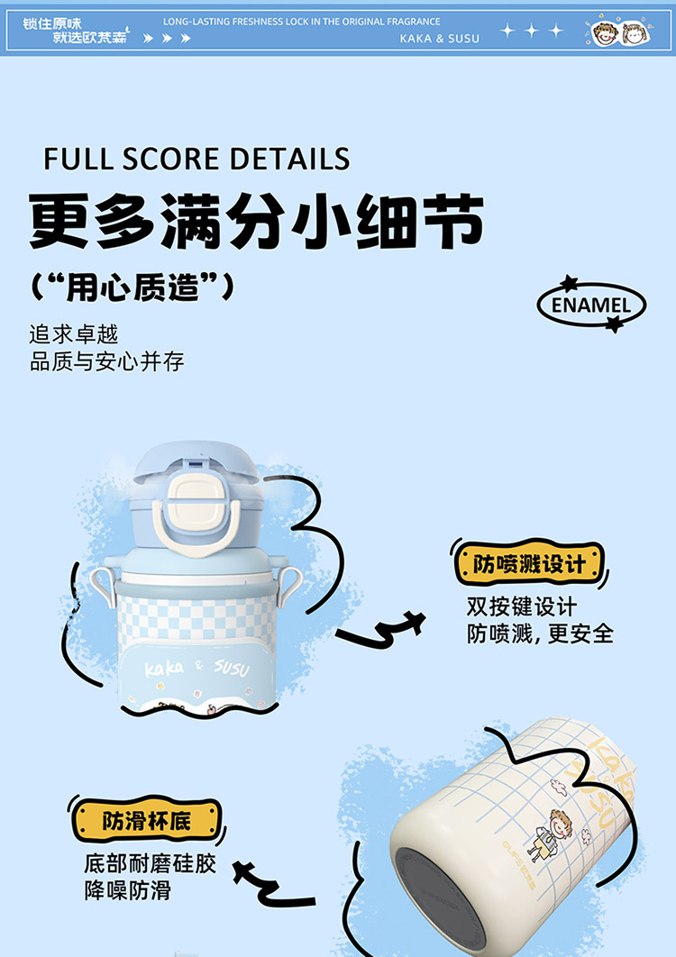OUFS欧梵森真健康珐琅保温杯 99%抗菌儿童杯宝宝学饮吸管杯高颜值长效保温杯480ml珐琅嘟嘟杯