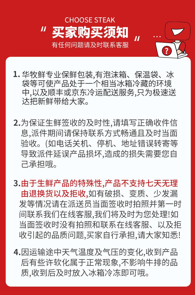 我们售卖的雪花牛排都挑自比较好的谷饲肉眼部位