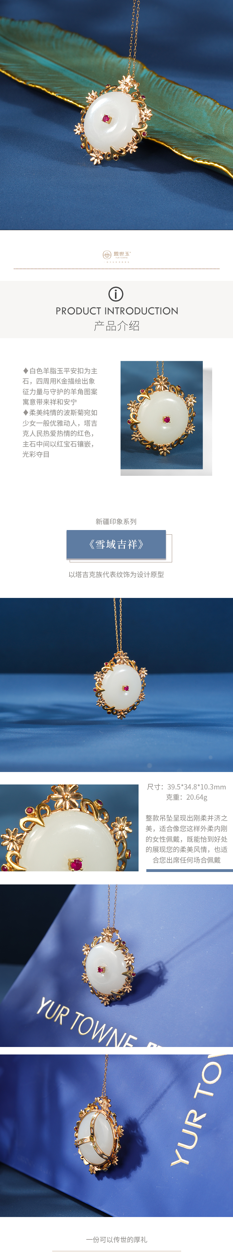 新疆国玉盟世玉和田玉金镶羊脂玉挂件 新疆系列【雪域吉祥】【带证书·顺丰物流】