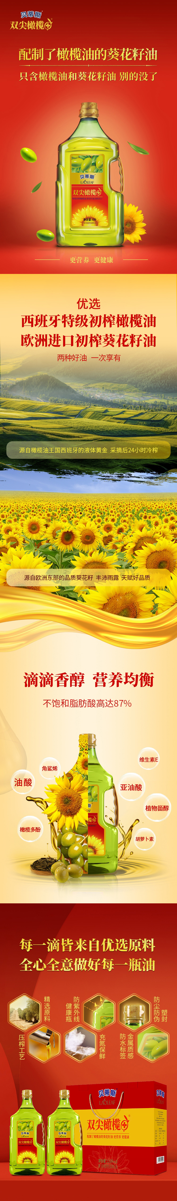 贝蒂斯橄榄葵花籽油1.6升/瓶*2瓶